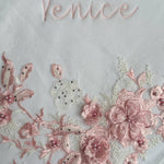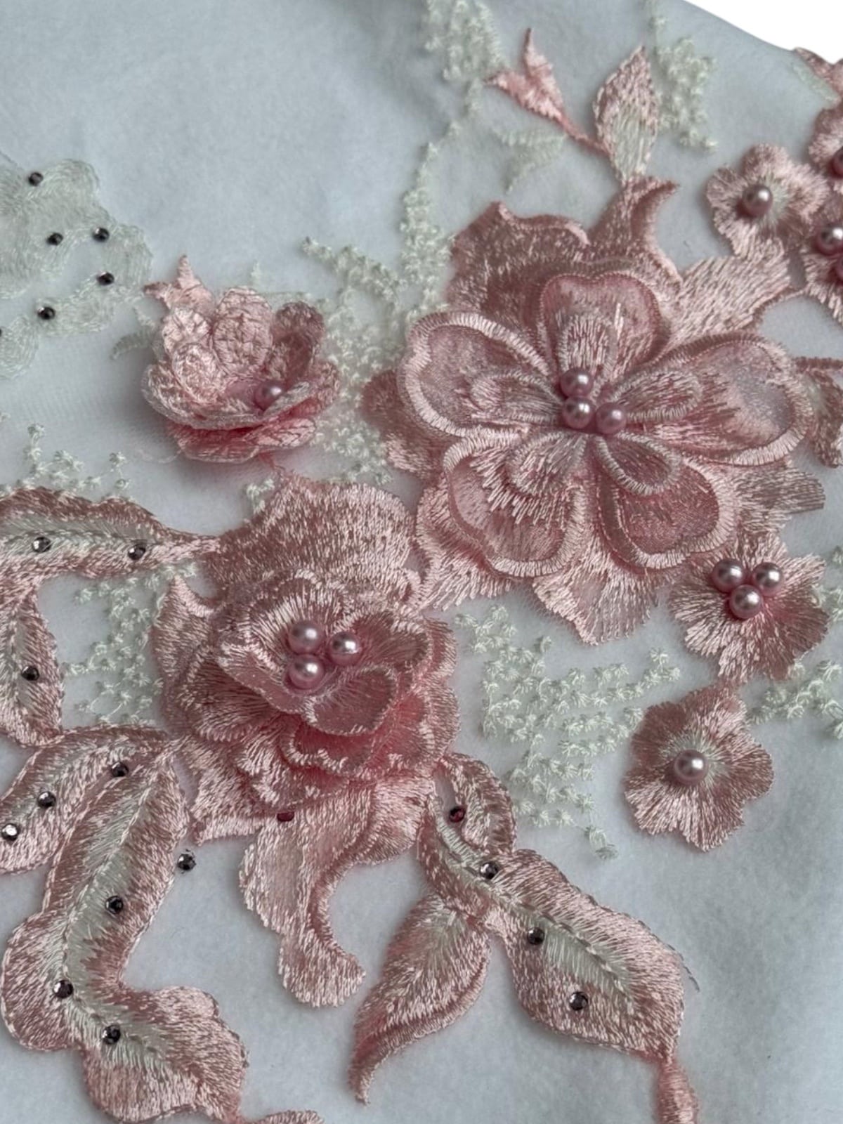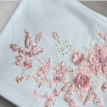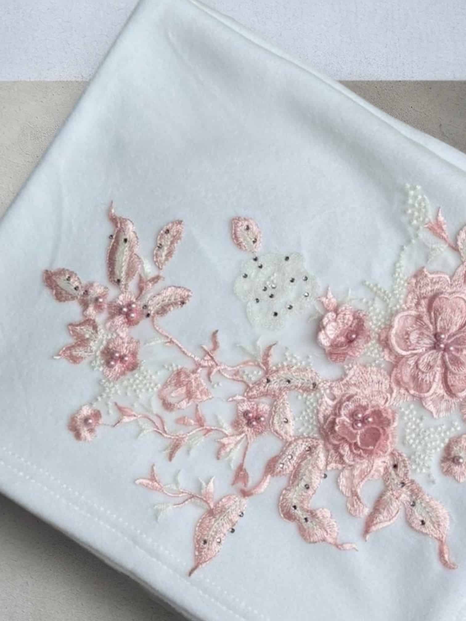 Adorned with securely glued appliqué flowers for a delicate, decorative touch