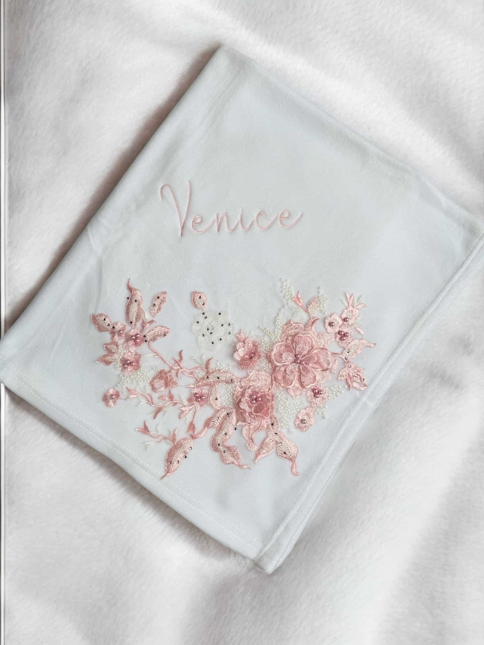 Soft Baby Fleece Blanket with Appliqué Flowers