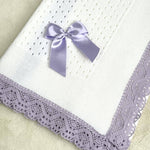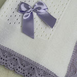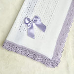 This luxurious baby knitted shawl is the perfect blend of comfort and elegance. Crafted from the softest acrylic, it features a delicate lace trim that adds a touch of vintage charm. A sweet ribbon bow ties it all together, making it an ideal accessory for any special occasion. Lightweight yet warm, this shawl will keep your little one cozy while offering a sophisticated look. Perfect for wrapping up your baby in a cloud of softness and style.