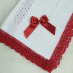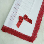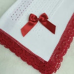 This luxurious baby knitted shawl is the perfect blend of comfort and elegance. Crafted from the softest acrylic, it features a delicate lace trim that adds a touch of vintage charm. A sweet ribbon bow ties it all together, making it an ideal accessory for any special occasion. Lightweight yet warm, this shawl will keep your little one cozy while offering a sophisticated look. Perfect for wrapping up your baby in a cloud of softness and style.