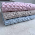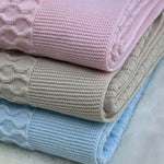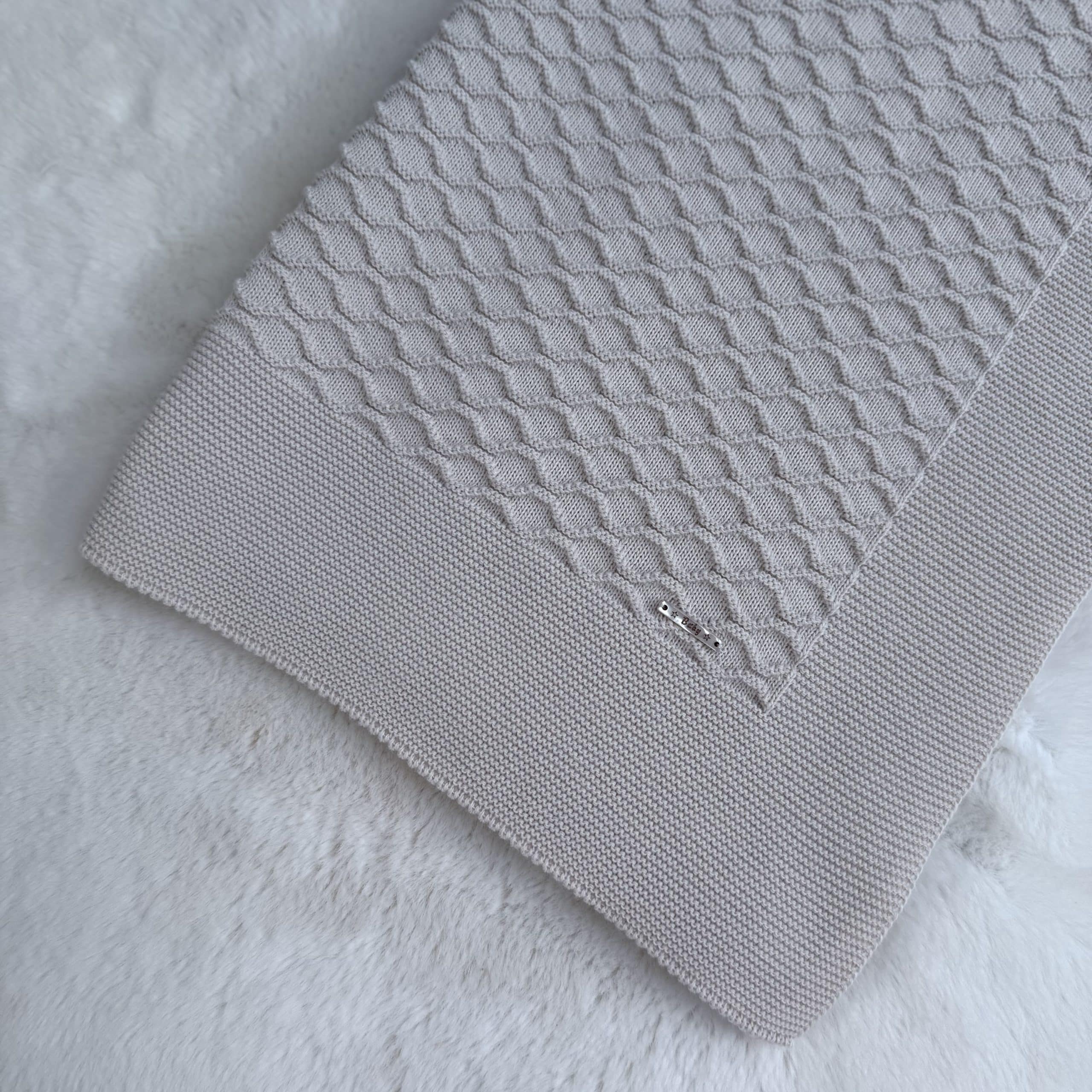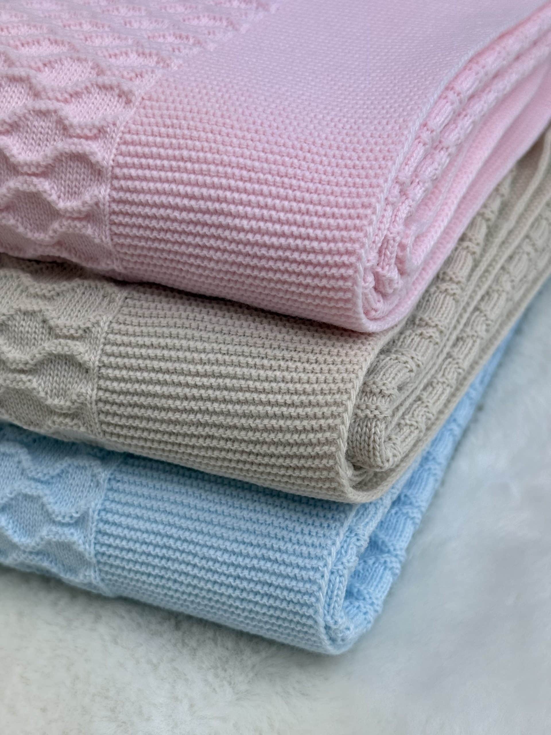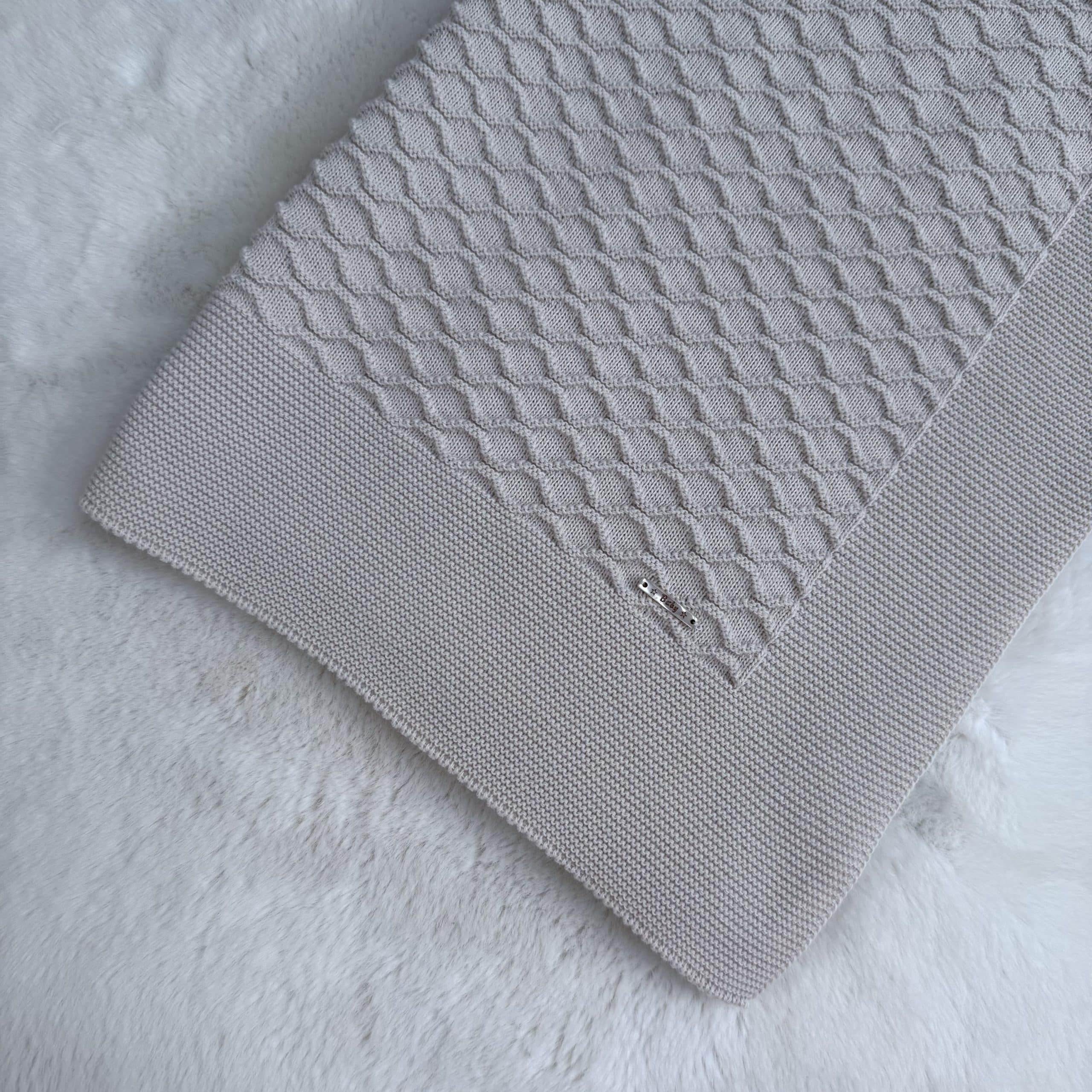 This Adorable baby Spanish shawl is perfect for a gift idea! This knitted shawl is made from 100% acrylic with a cable pattern in the front. Be sure to keep your little one warm.
