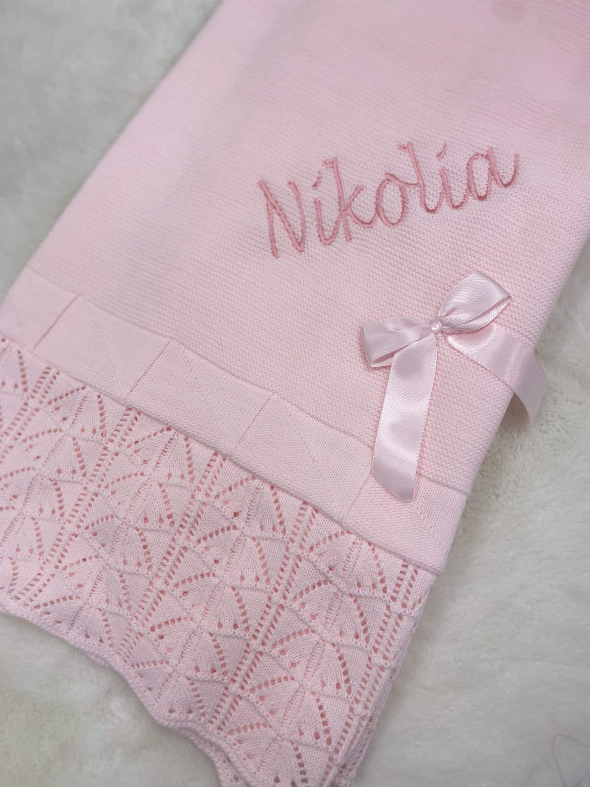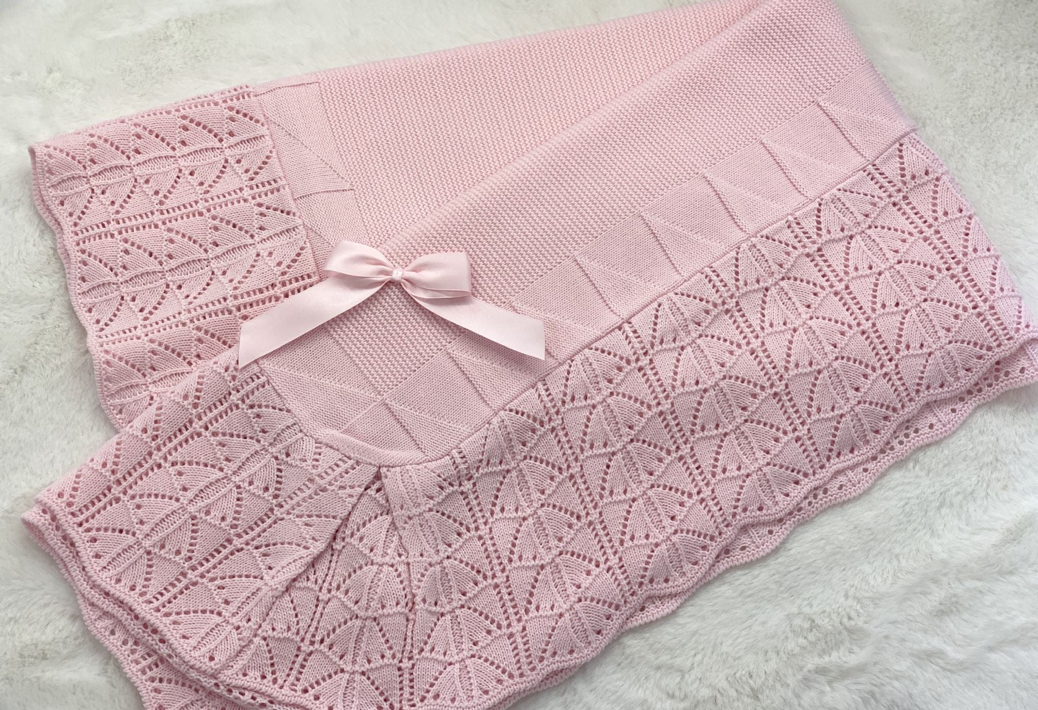 Perfect Little Thing Baby Spanish Luxury Knitted Shawl - Baby Pink