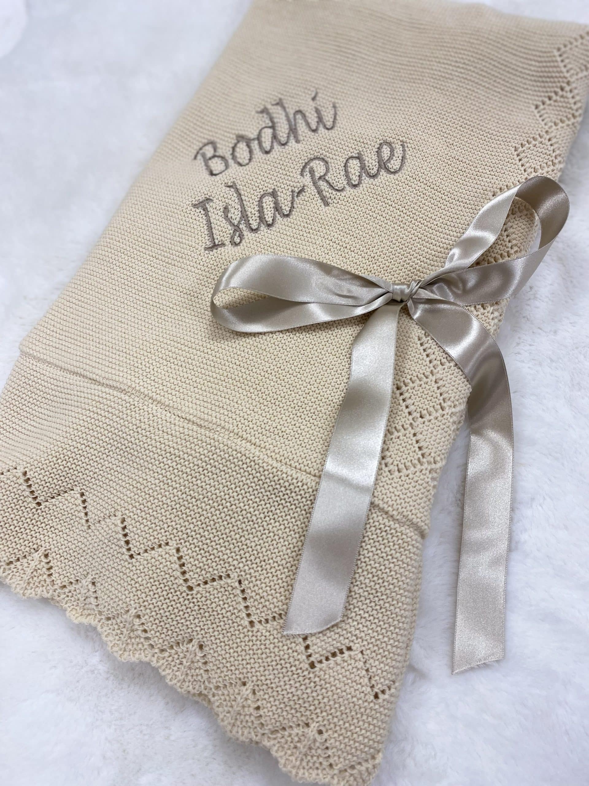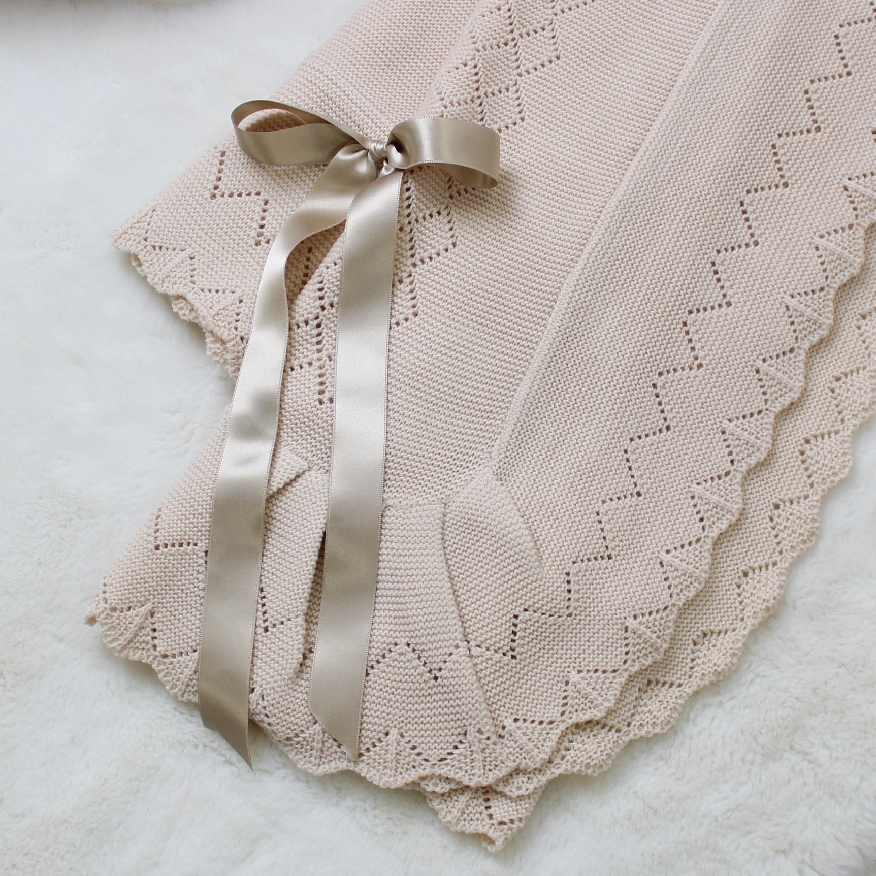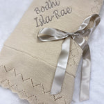 Perfect Little Thing baby shawl pattern may vary comes with a large satin bow.