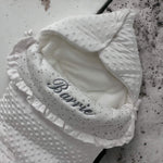 A beautiful footmuff to be used in a car seat.