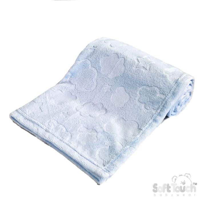 Soft Touch Baby Boys Embossed Wrap Blanket - Blue Clouds