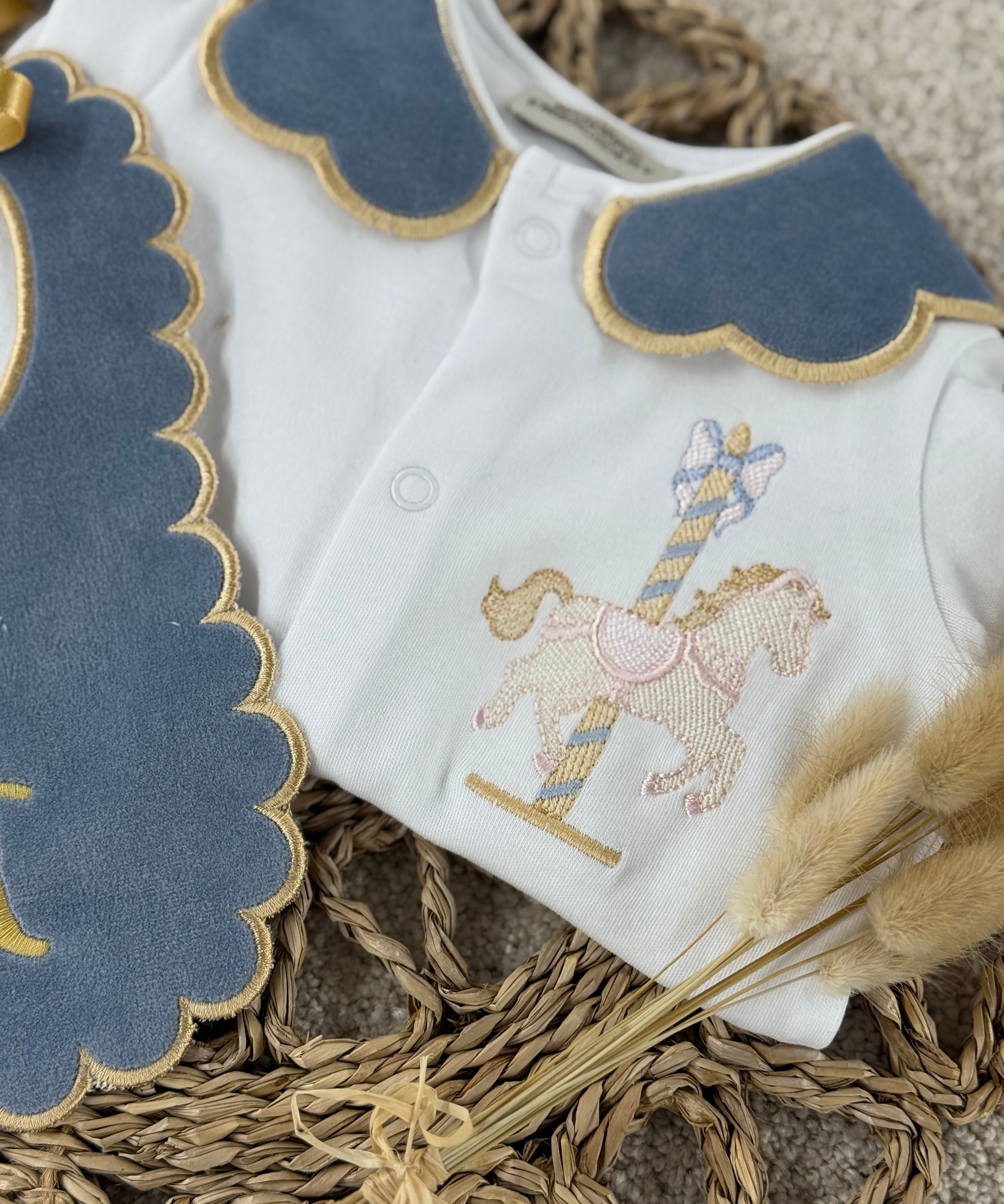 Baby Girls Handmade Horse Sleepsuit & Bib