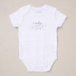 Baby's Five piece set with a "Hello Little One" design all over Perfect for a gift and comes with a Complimentary Box.