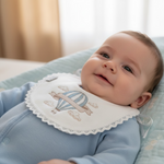 Add a touch of luxury to your little one’s outfit with our beautifully embroidered blue hot air balloon bib. Designed with practicality and elegance in mind, this bib is made from soft, breathable cotton — gentle on delicate skin while keeping your baby clean and comfortable. The lace trim and satin ribbon tie make it perfect for both everyday wear and special occasions.