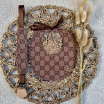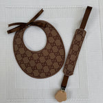 Baby's Brown Handmade Round Bib & Dummy Clip