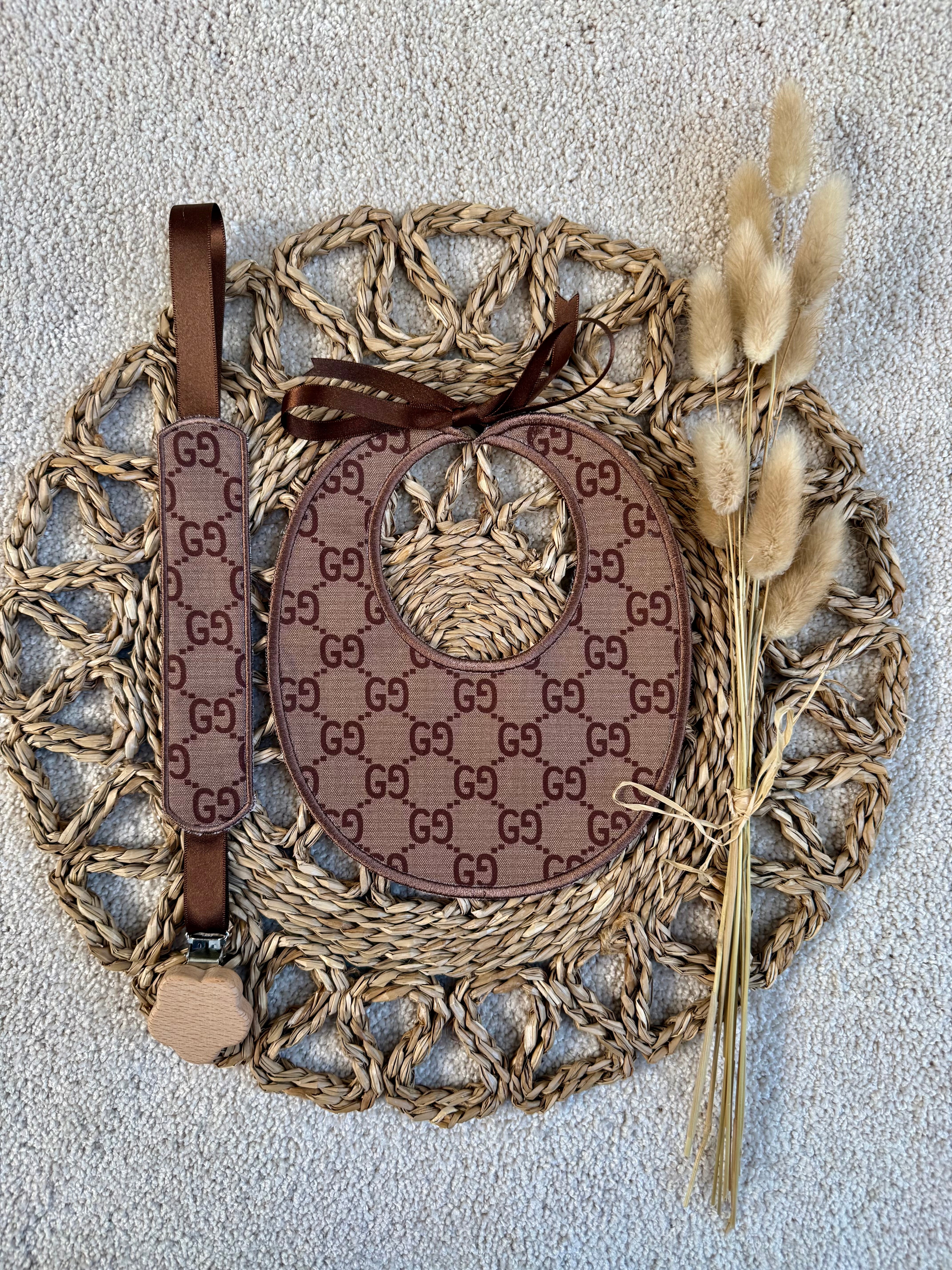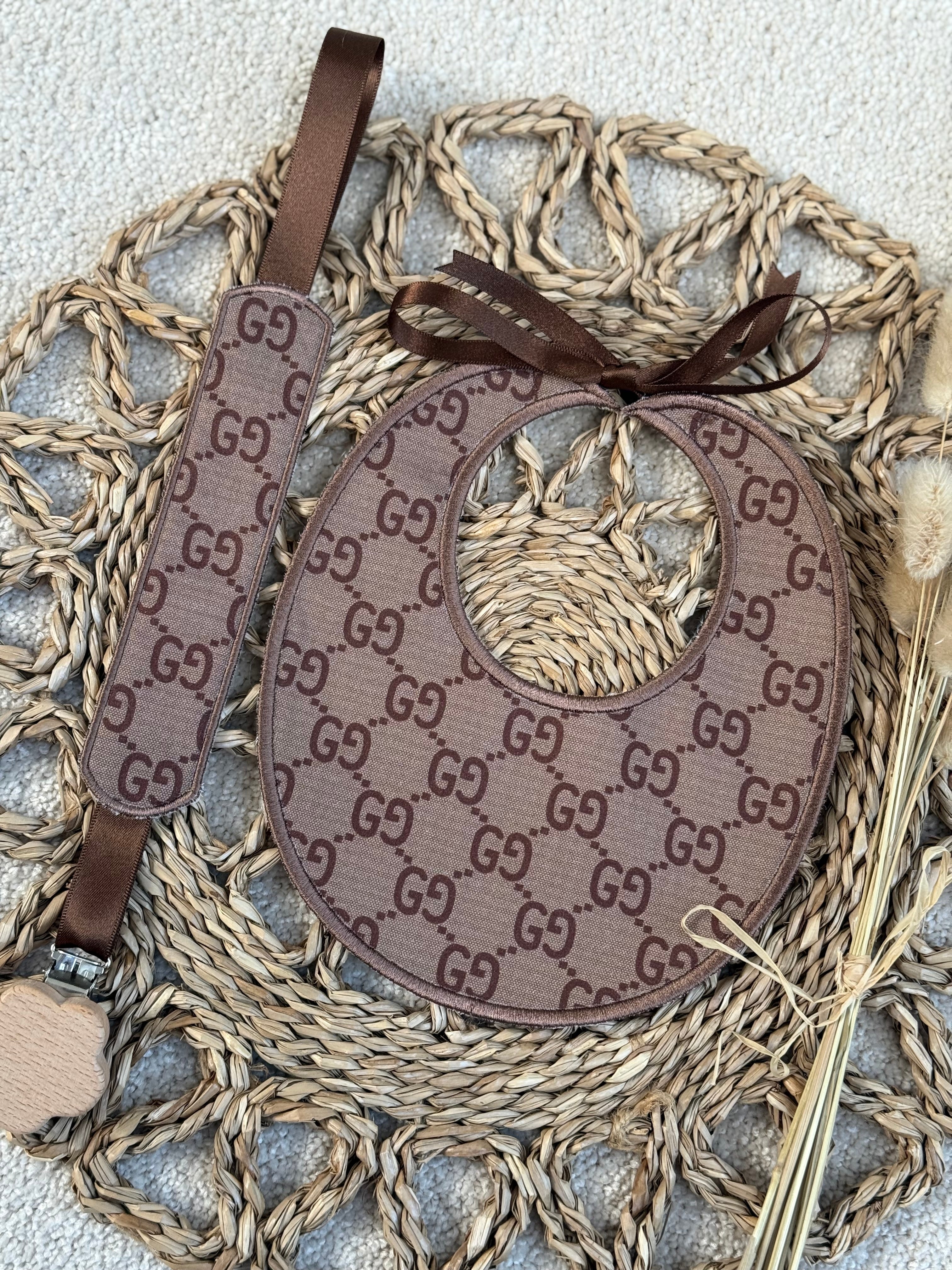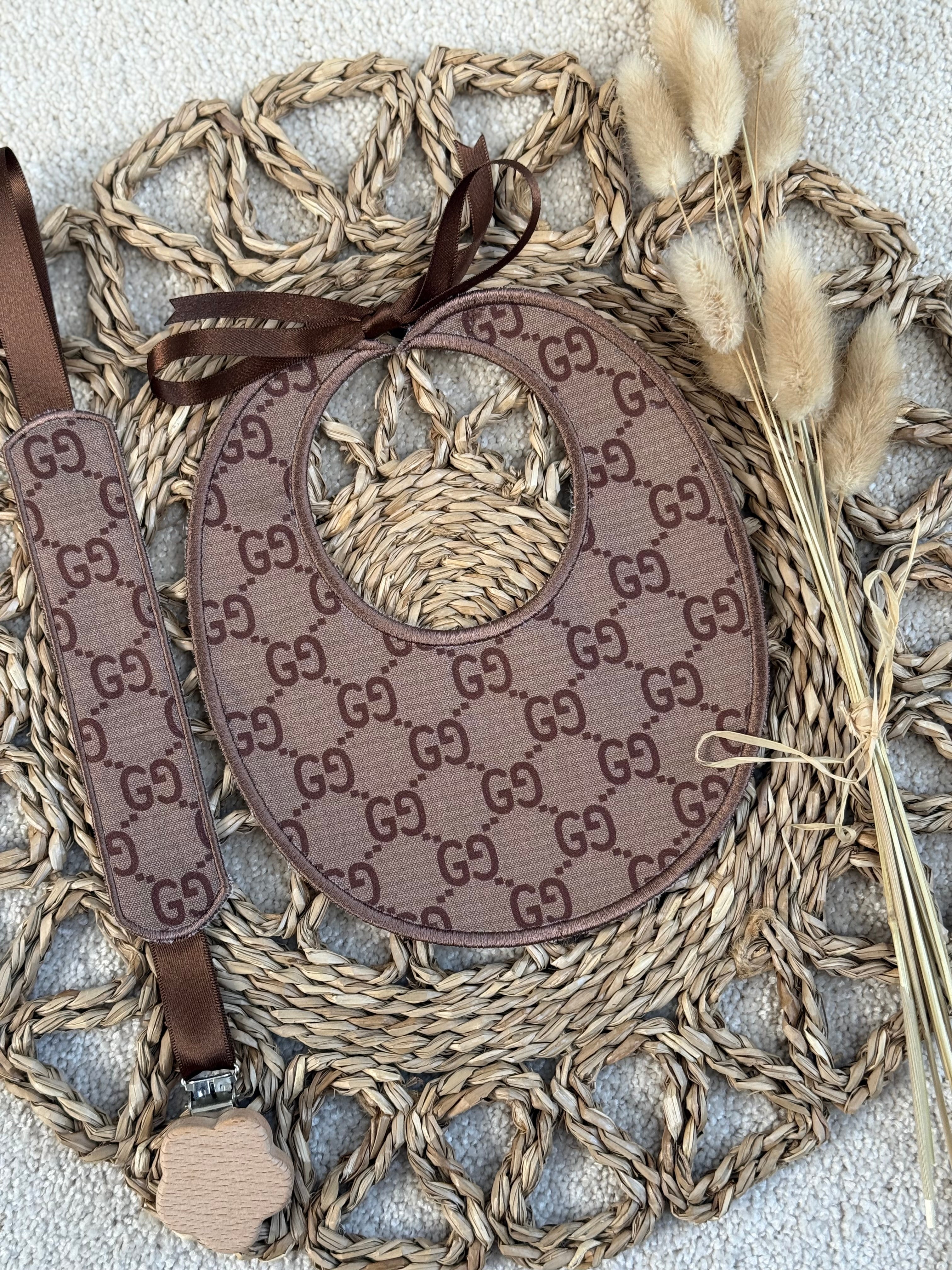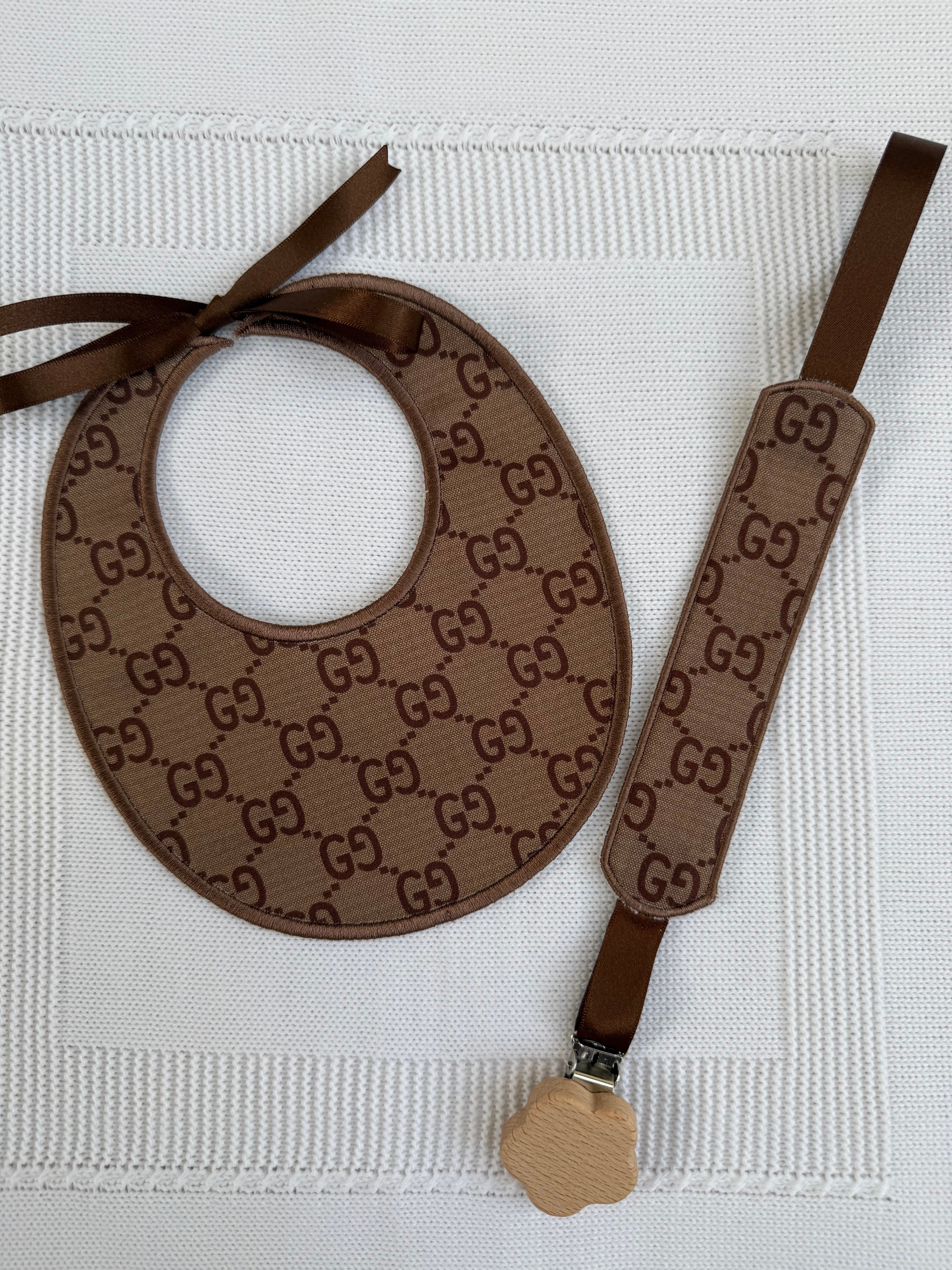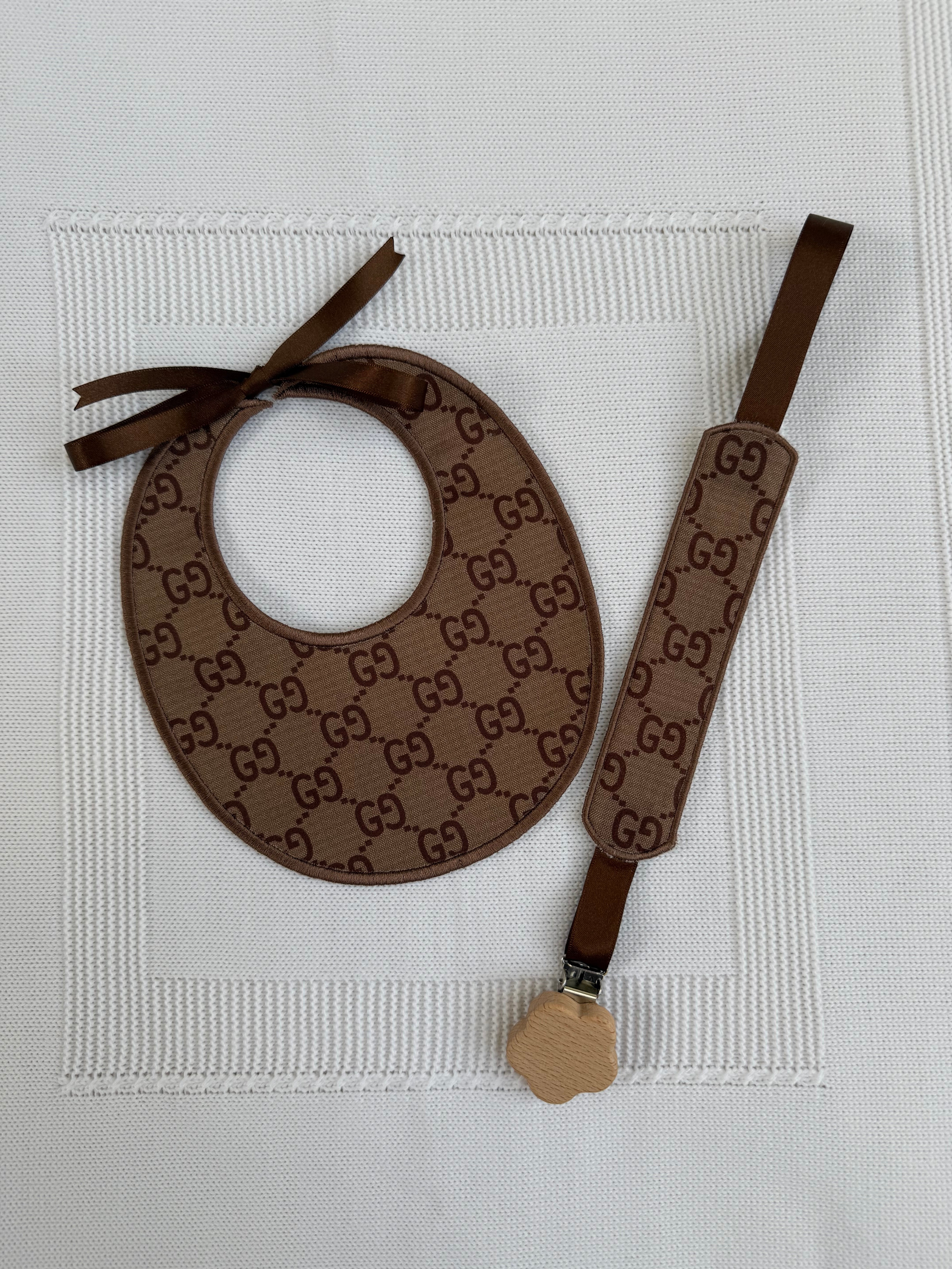 Luxury Handmade Baby Bib & Dummy Clip Set – 100% Cotton