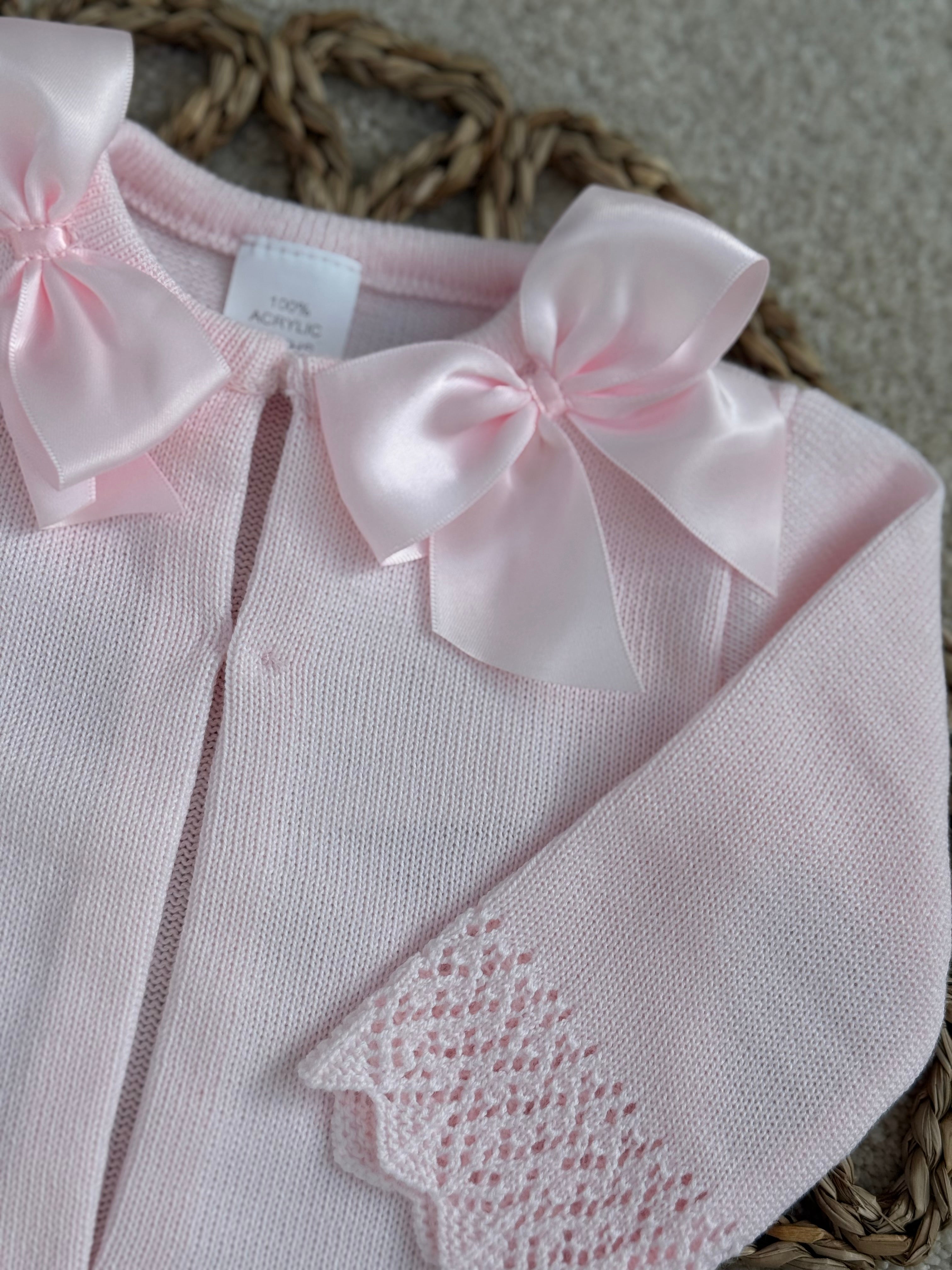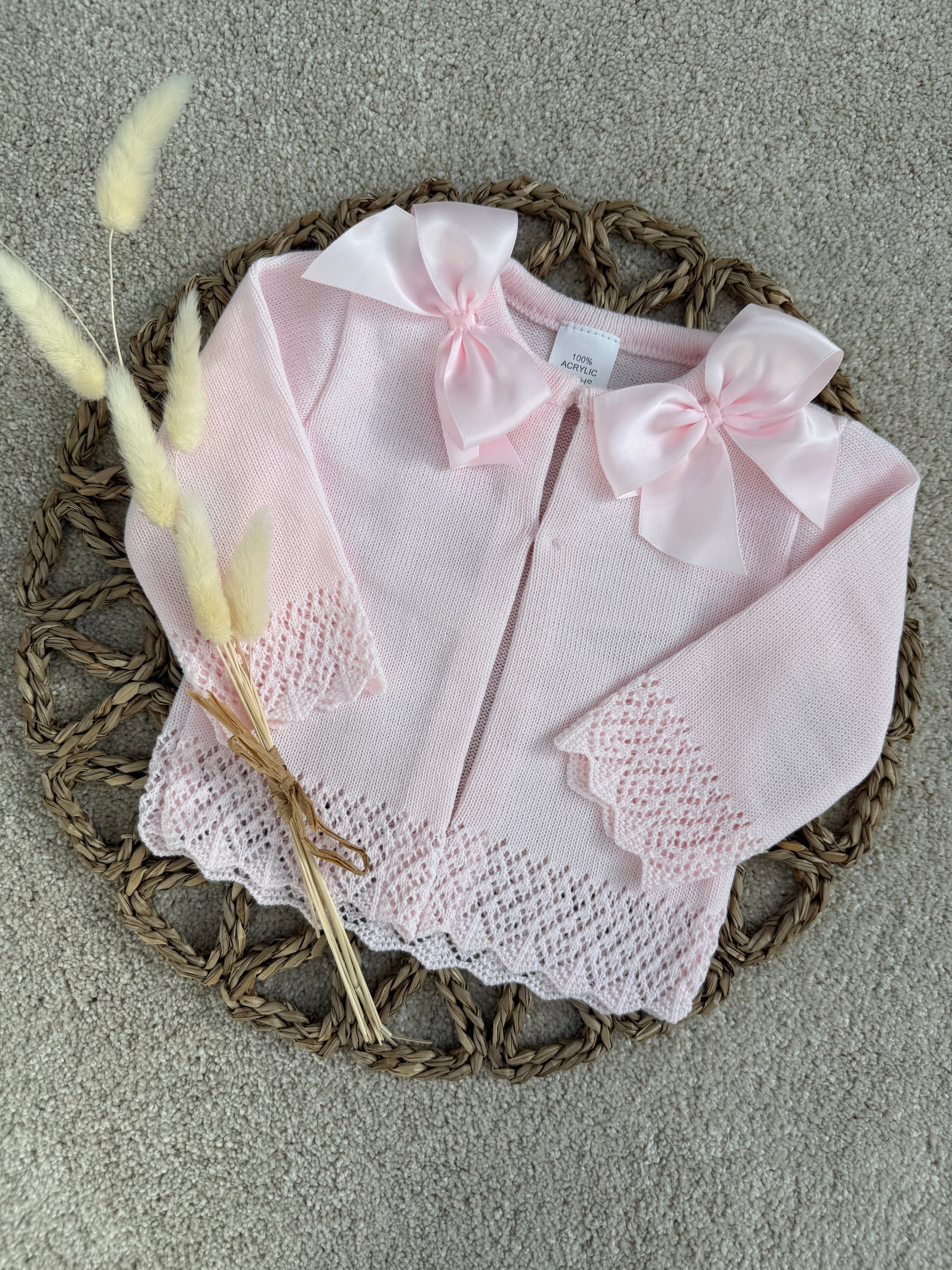 Baby Girls Pink Cardigan Two Satin Bows