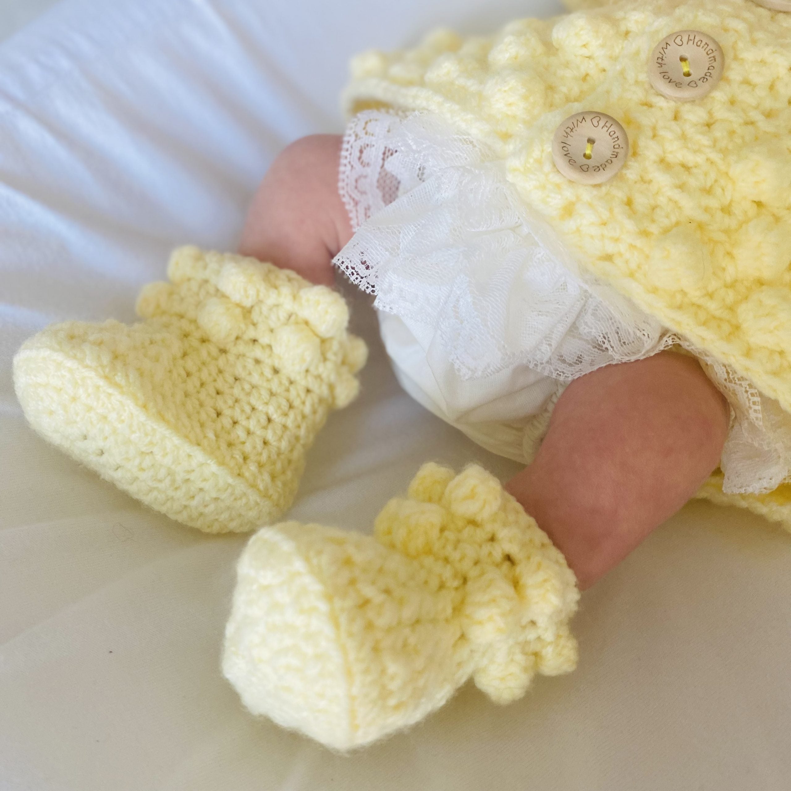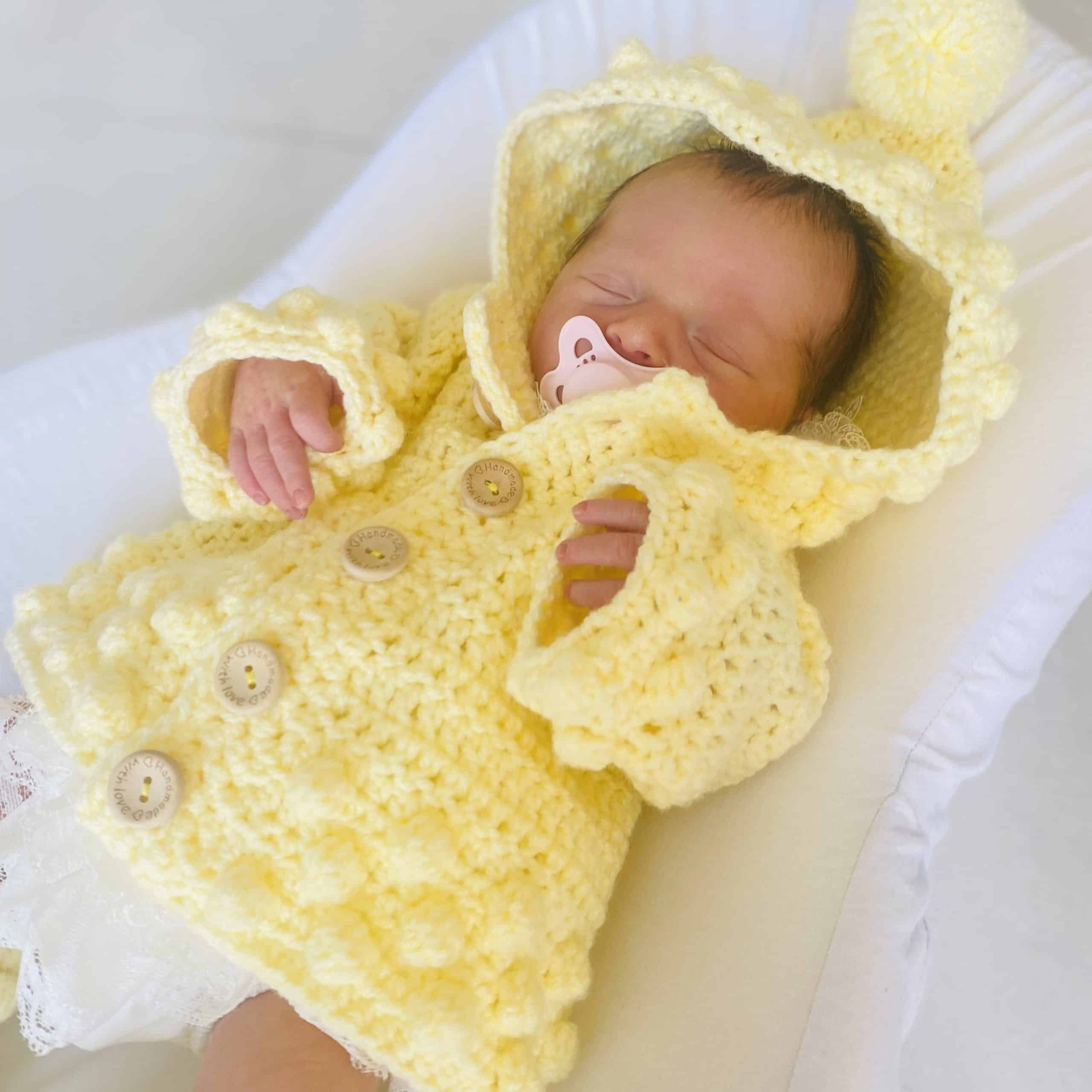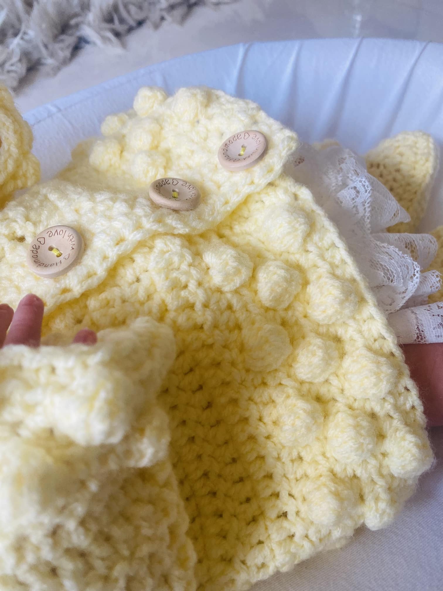 Perfect Little Thing - PRE ORDER Handmade Aran Puff Hoodie Crochet - Lemon
