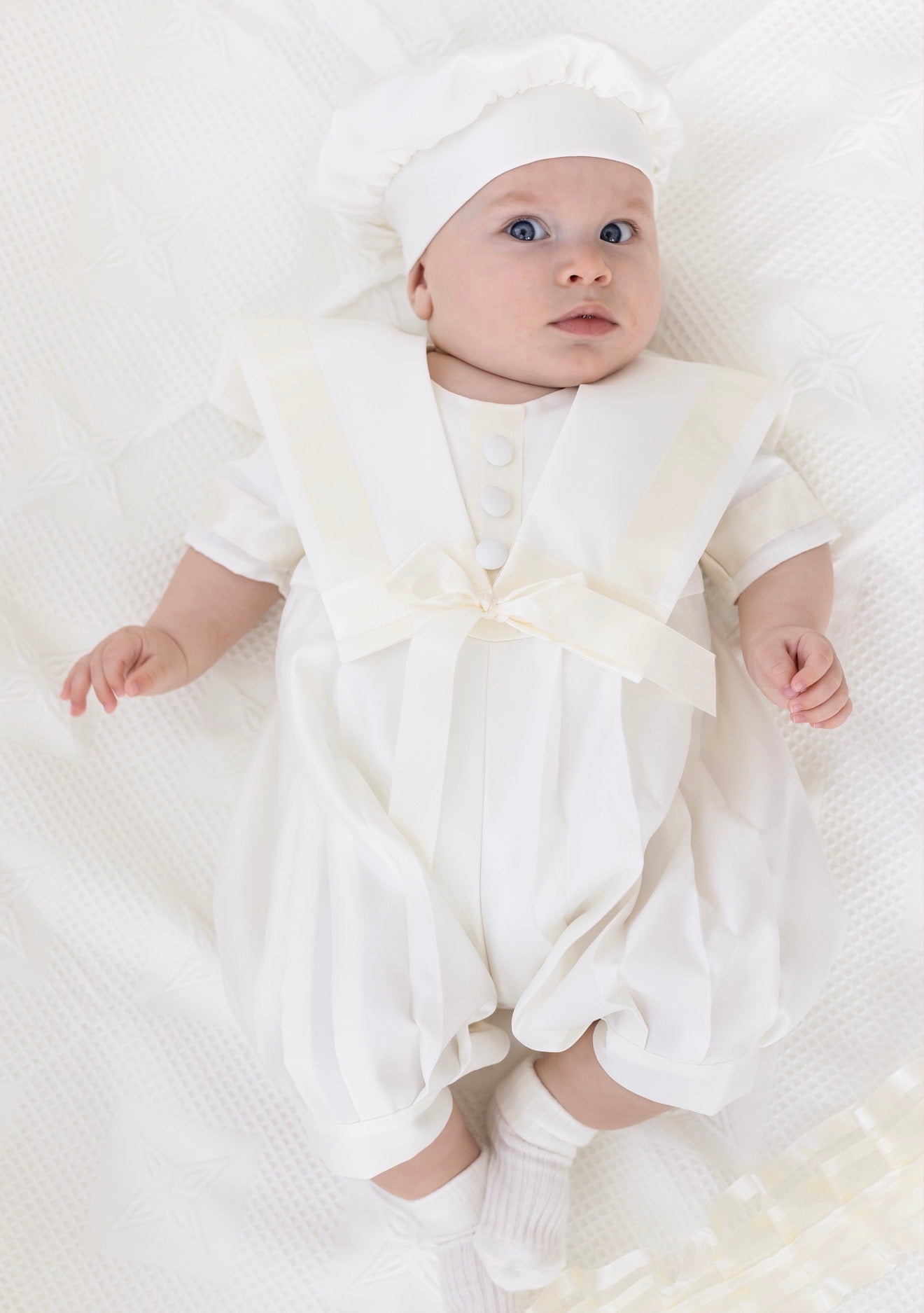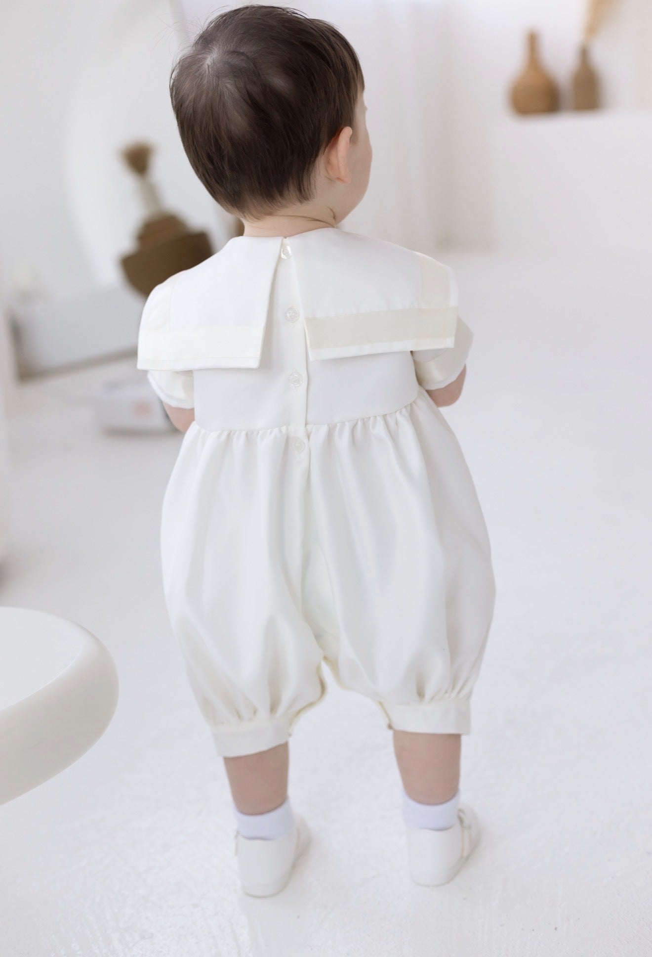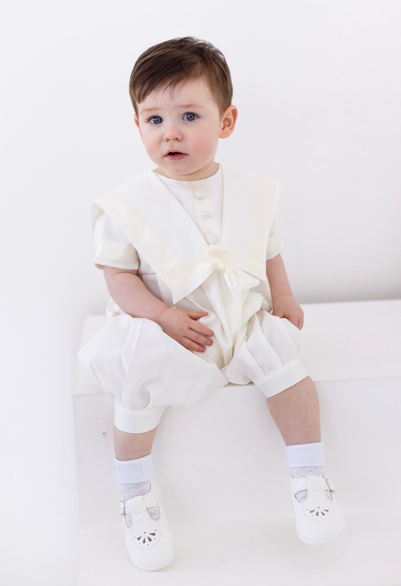 Baby Boys Ivory Christening Romper Sailor | Traditional Baptism Outfit UK