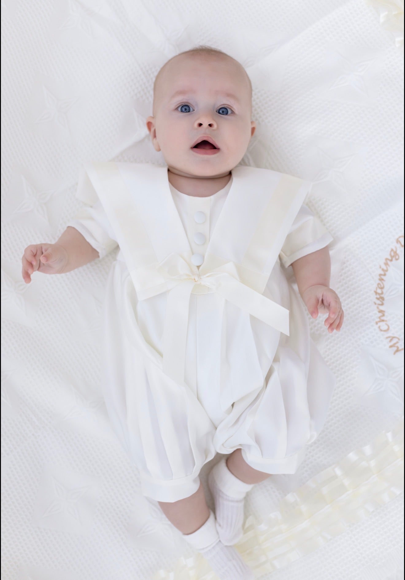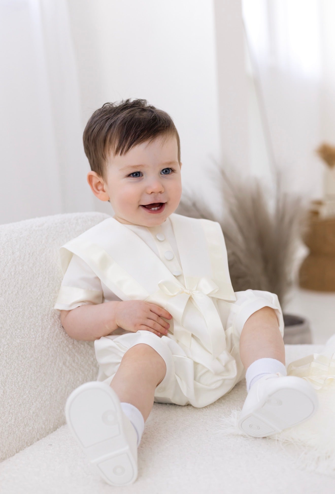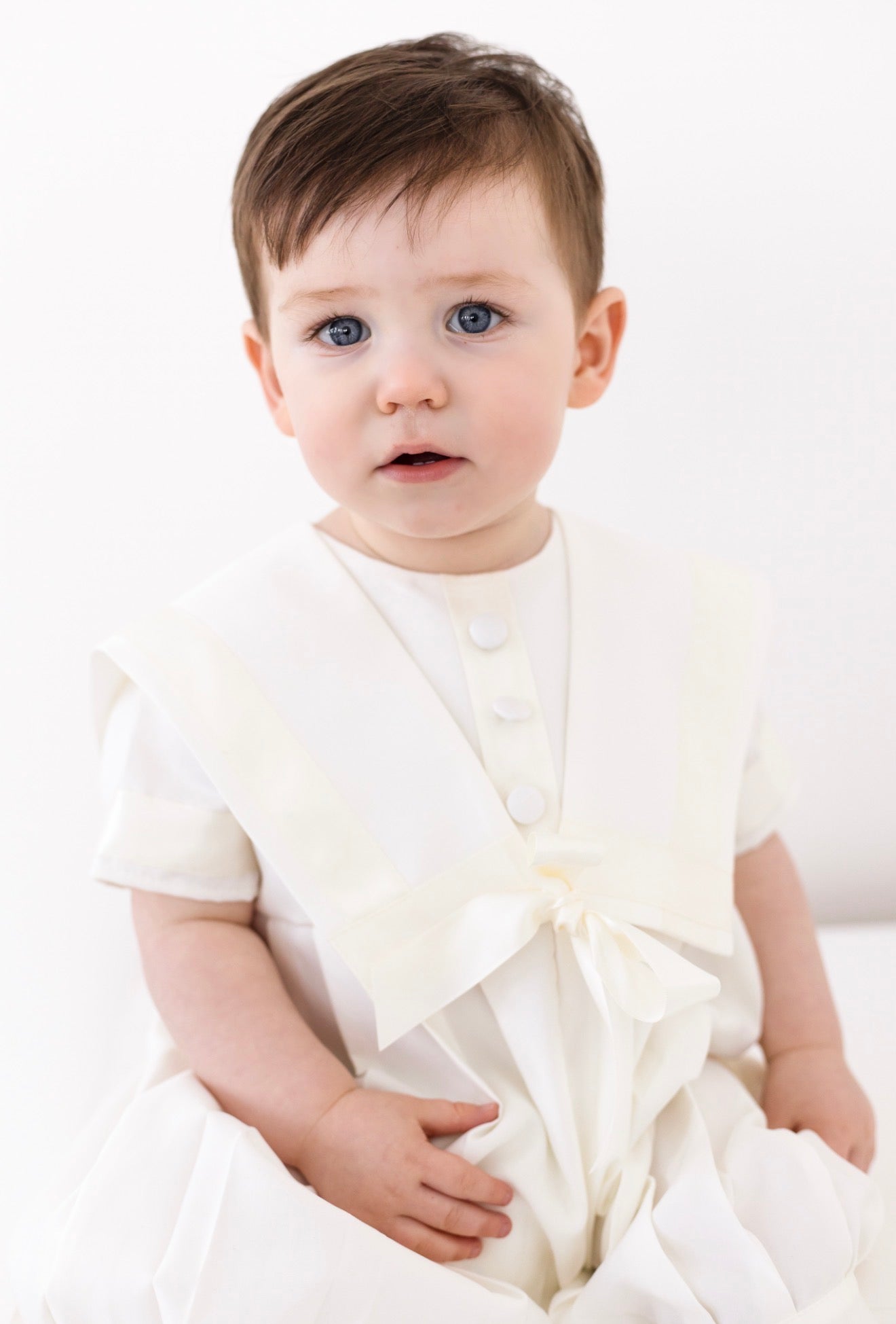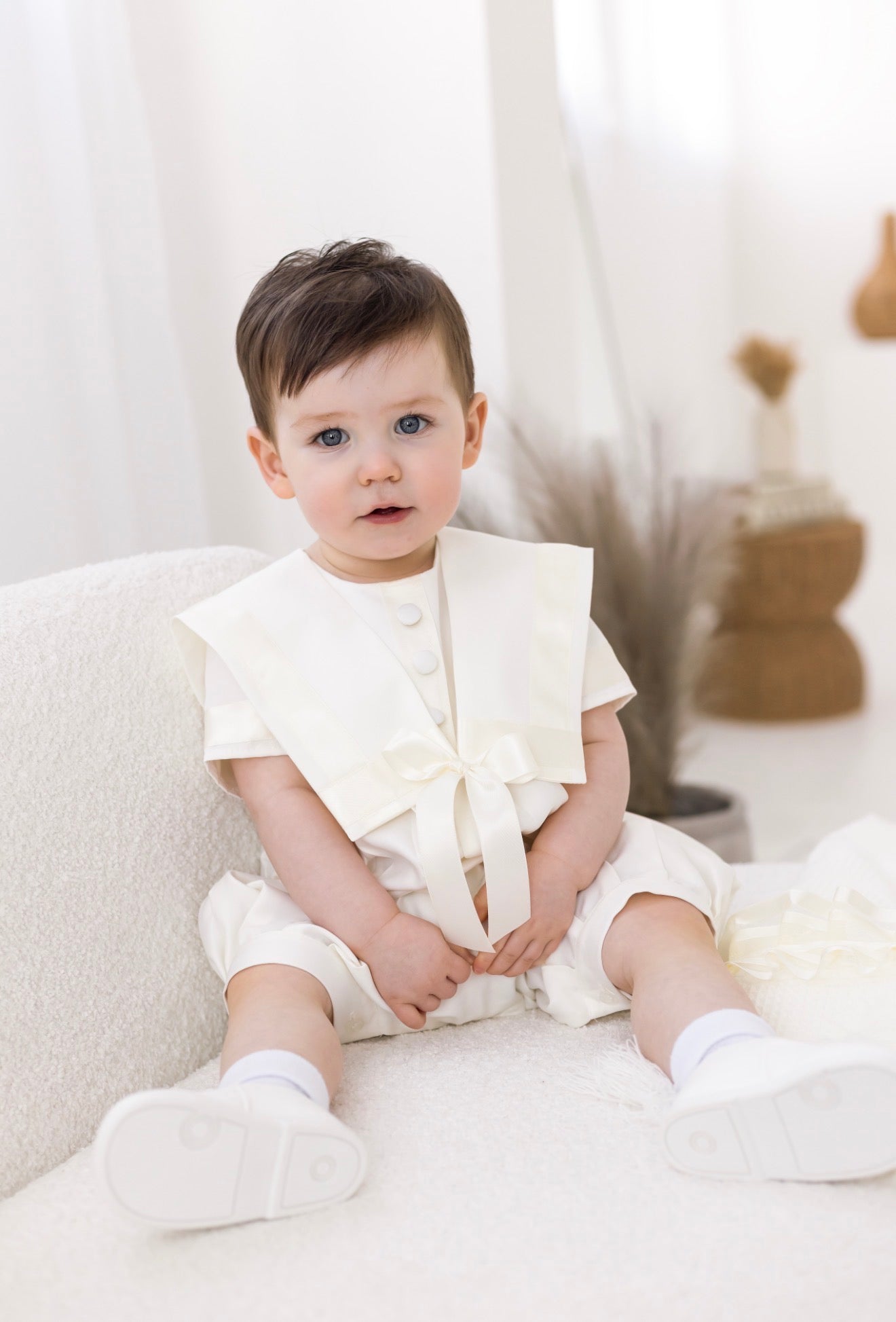 Baby Boys Ivory Christening Romper Sailor | Traditional Baptism Outfit UK