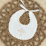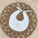 Make your baby's christening extra special with this one-of-a-kind Unisex Handmade Christening Bib. Meticulously crafted by skilled artisans, this bespoke bib is the perfect accessory to make your little one stand out from the rest.