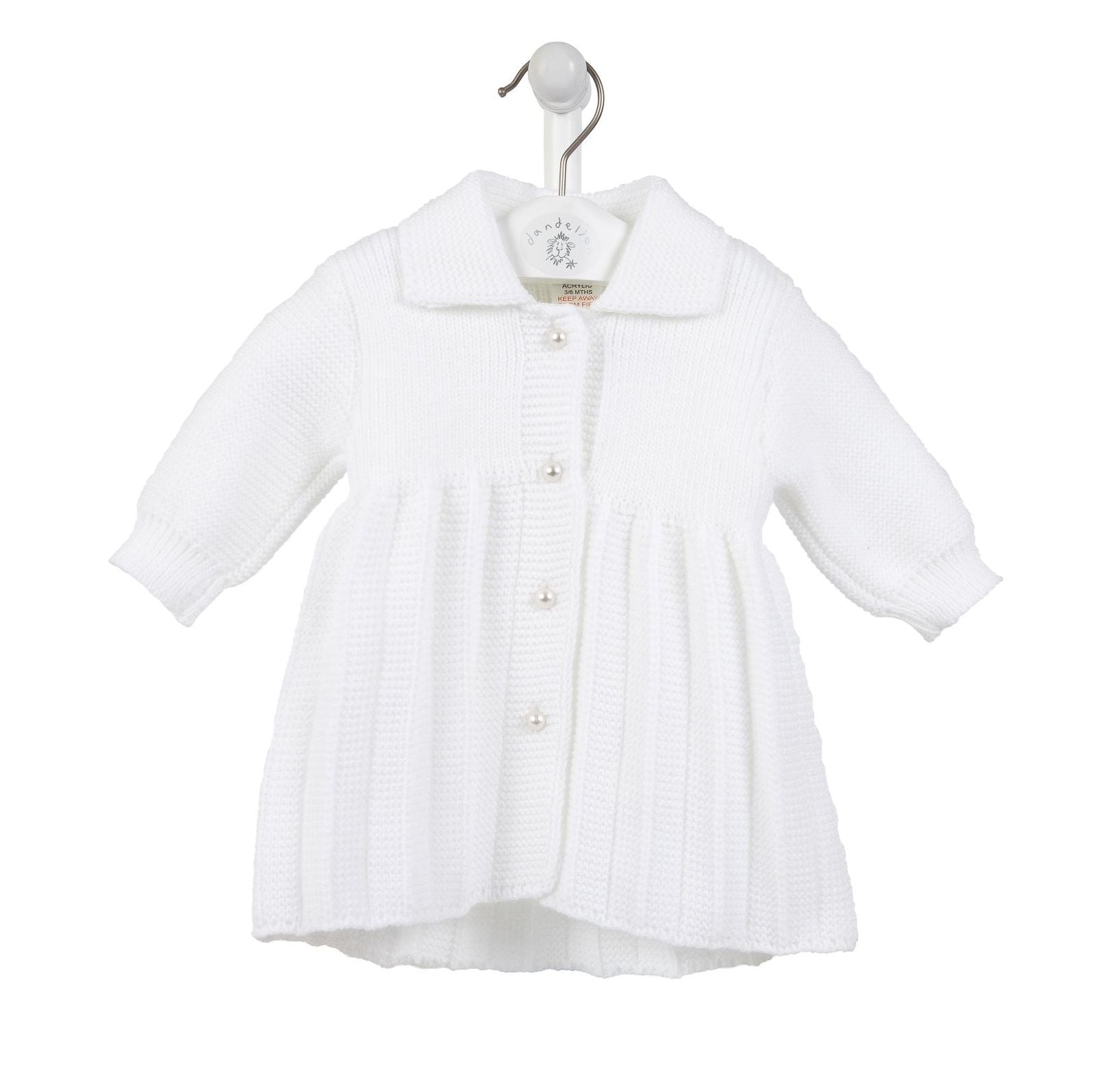 Dandelion Girls Knitted Pearl Button Pleated Coat - White