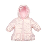 Crafted in a delicate pastel pink, this baby winter coat features a soft padded exterior for maximum warmth, a fleece-lined hood for extra coziness, and adorable ruffled hem detailing for a stylish, girly touch. The full-length zip makes dressing quick and easy, while the elasticated cuffs help keep the cold out.