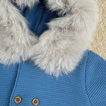 Wrap your little one in warmth and elegance with this beautifully crafted knitted jacket from Mac Ilusión. Designed in a timeless light grey tone, this piece features a luxuriously soft faux fur-trimmed hood, perfect for keeping your baby cozy on chilly days.