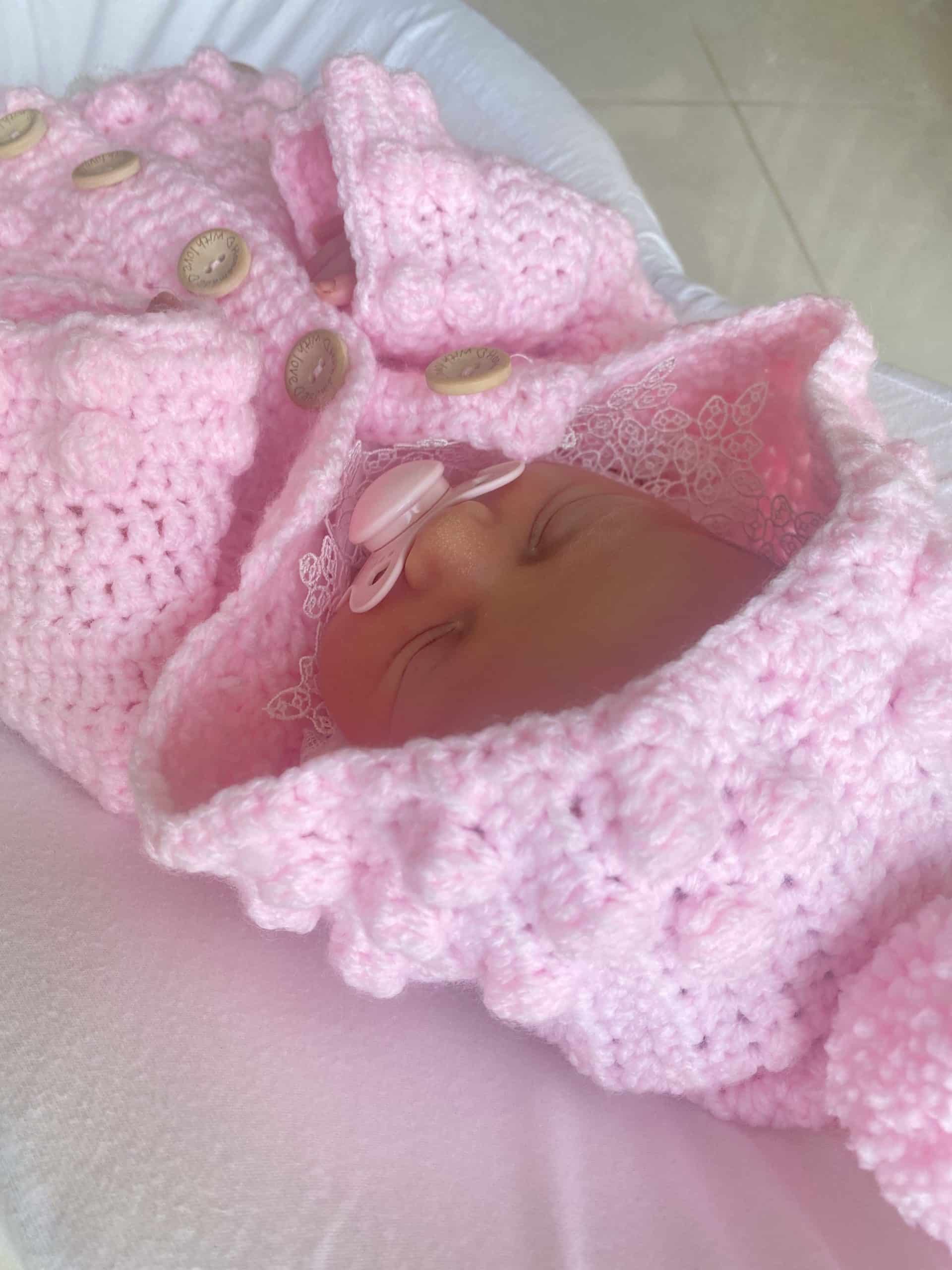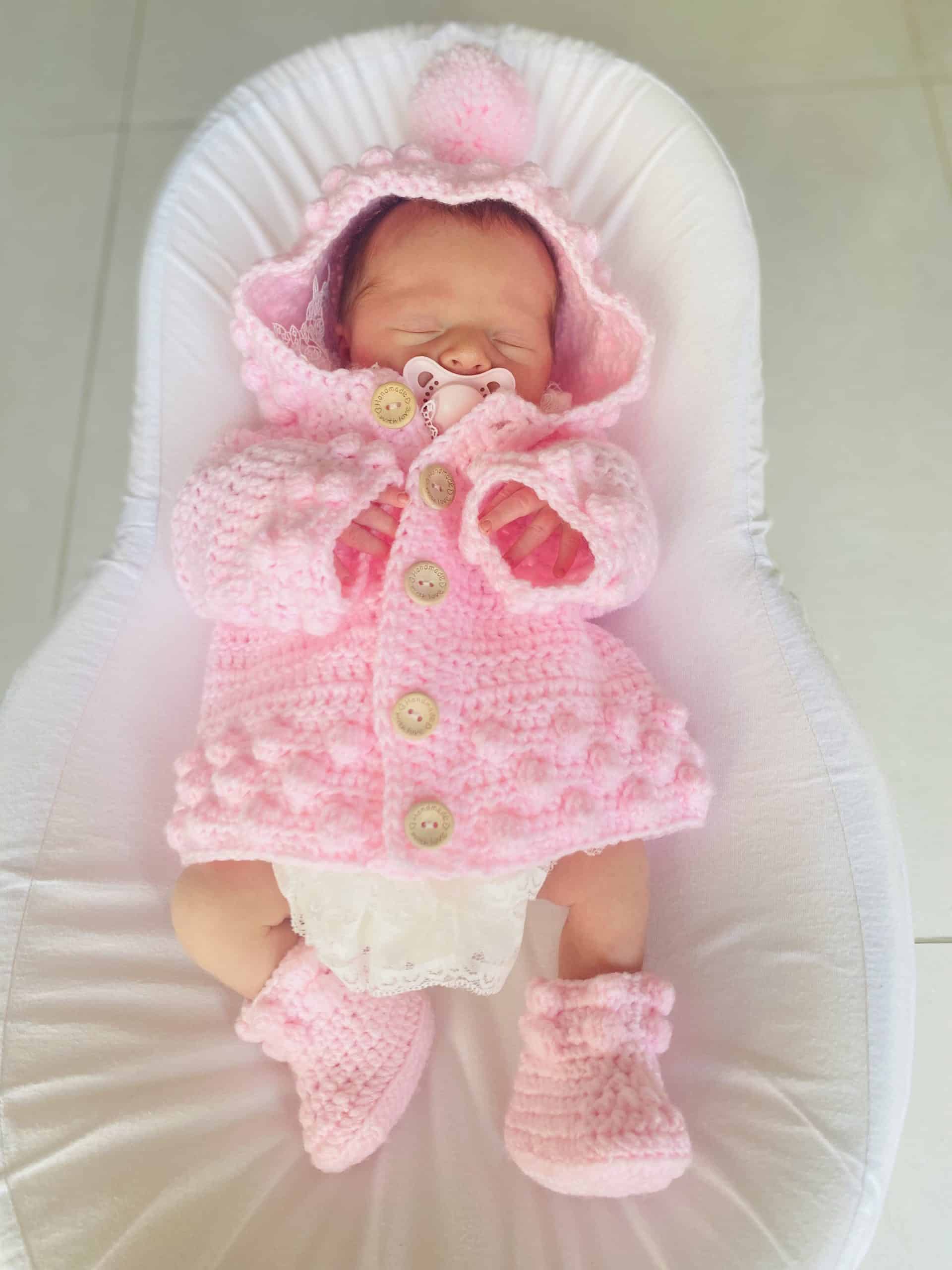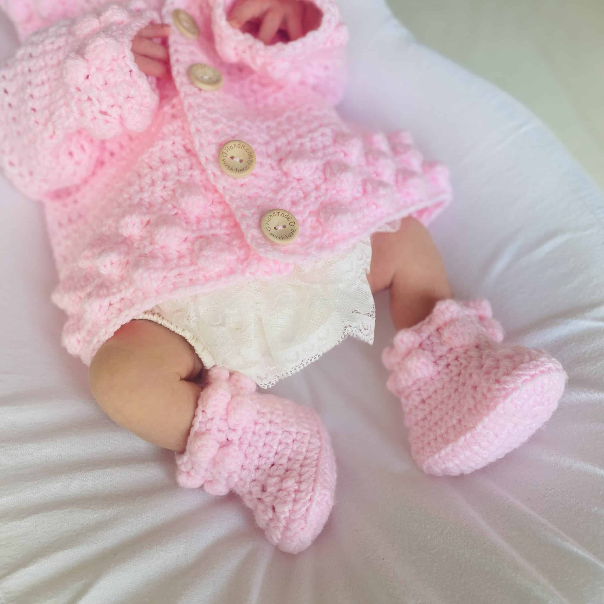 These are pre order items as these are all handmade, Please allow upto 2 - 3weeks delivery if you want it sooner please send us a email we can try and sort something for you if possible. This set comes in Lemon, Pink, Blue & White Perfect for a gift for a newborn born baby.