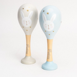 Brand new Bambio wooden toy collection by Juliana Adorable hand-painted blue and grey wooden maracas.