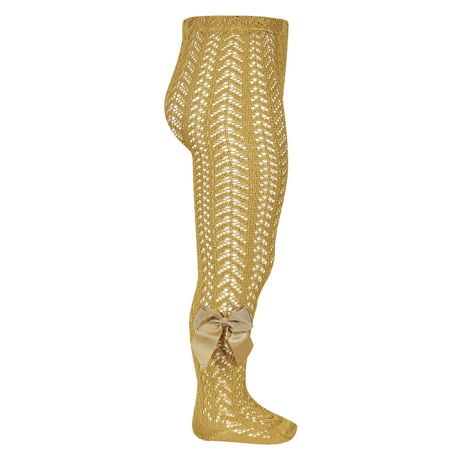 Condor Tights Girls Condor Perle Openwork Tights With Bow - Mustard