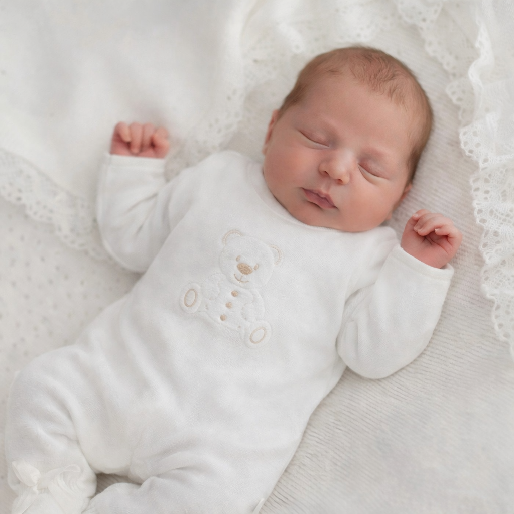 Dandelion Teddy Bear Knitted Onesie - White
