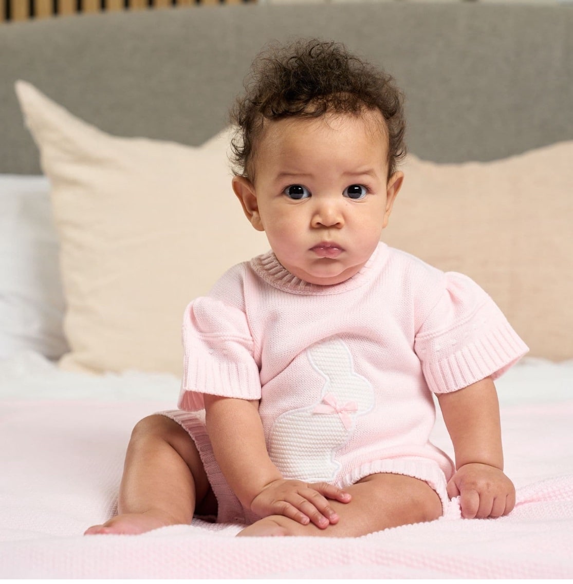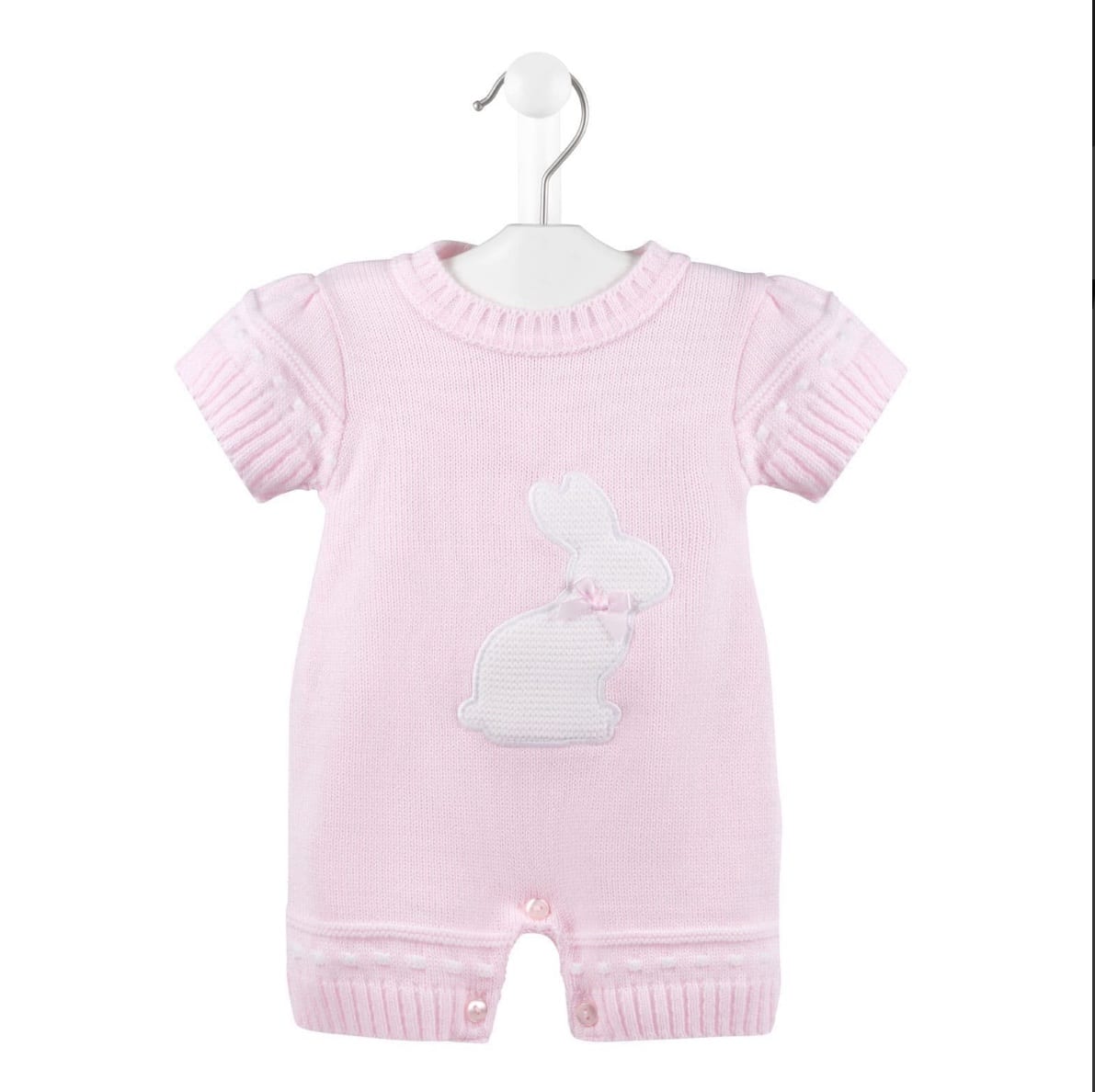 girls beautiful Bunny design knitted Romper, these come in 3 different colours, blue, lemon & Pink. Perfect for Easter also summer too.