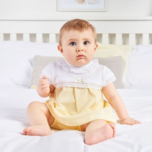 Dandelion Girls Cotton Pique Dress And Pants - Lemon