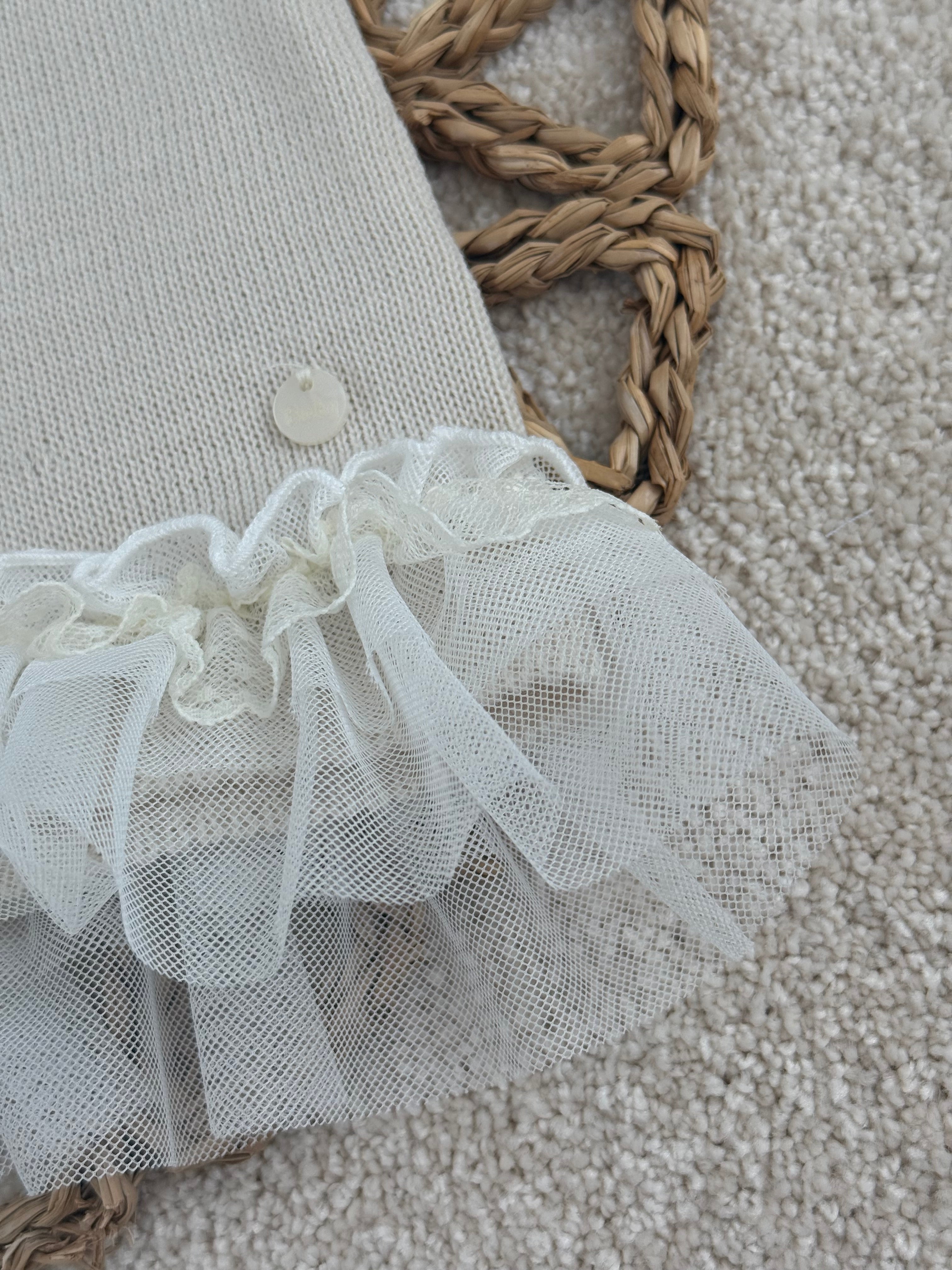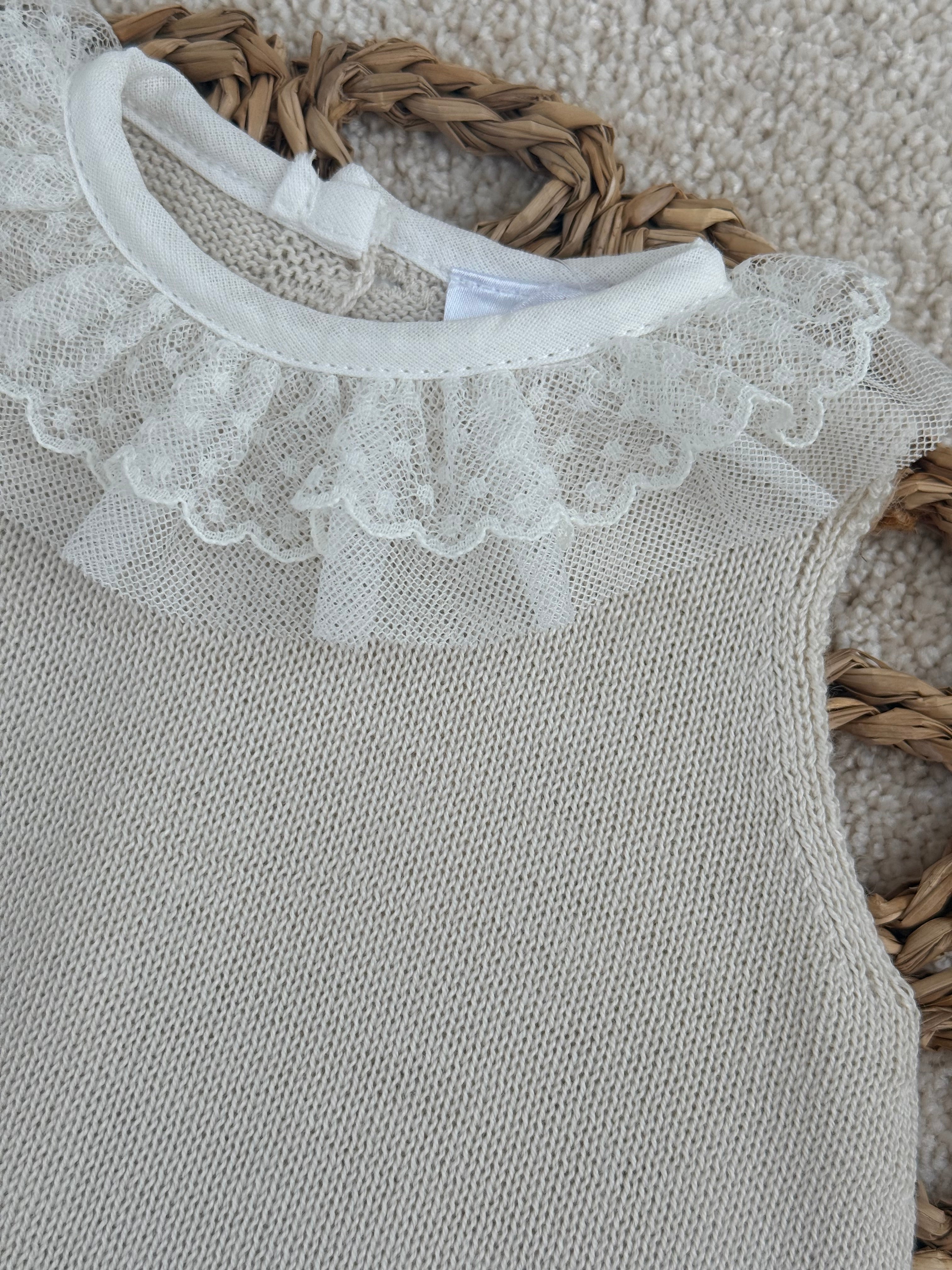 Beige Knitted Lace & Tulle Baby Girl Tammy Dress