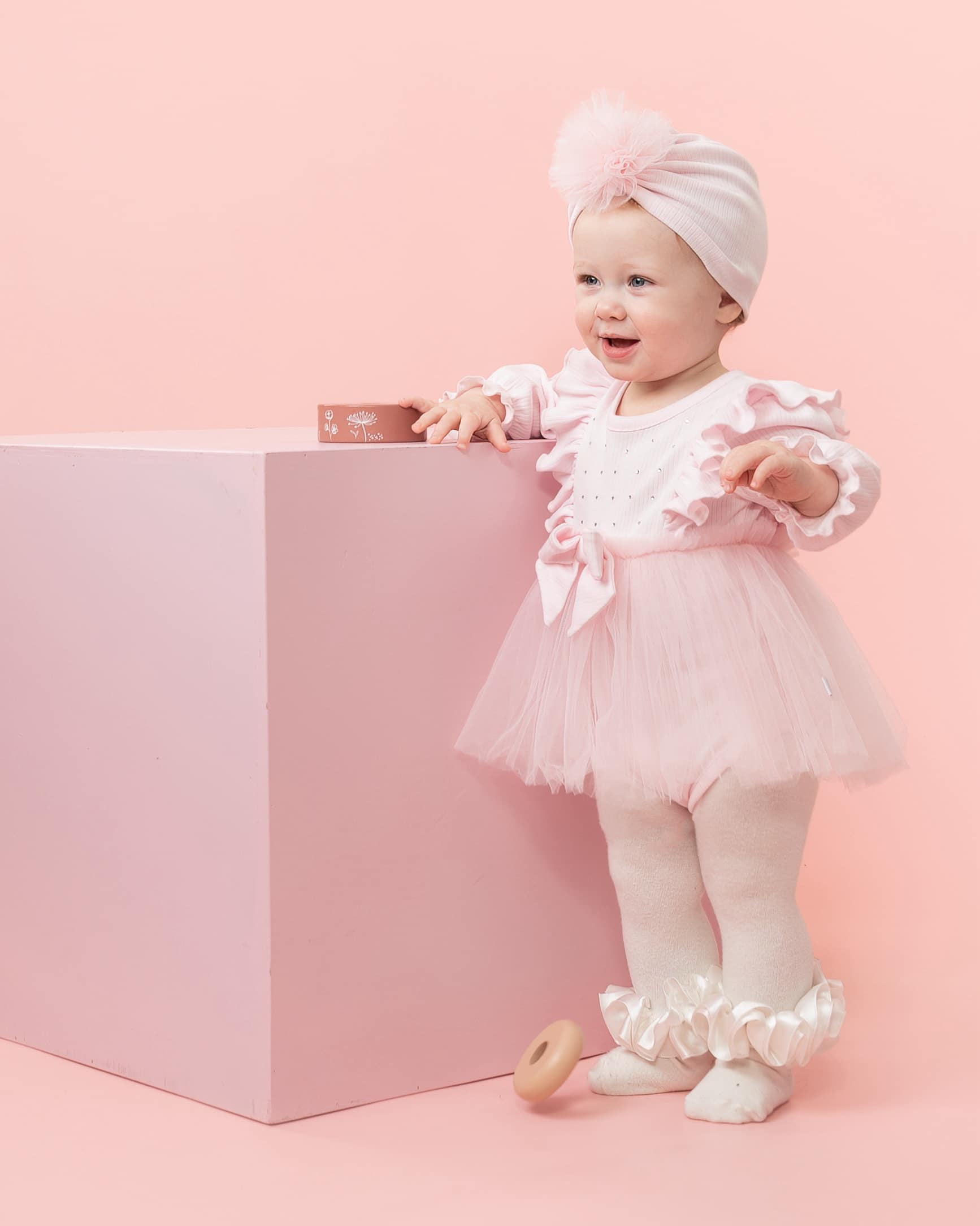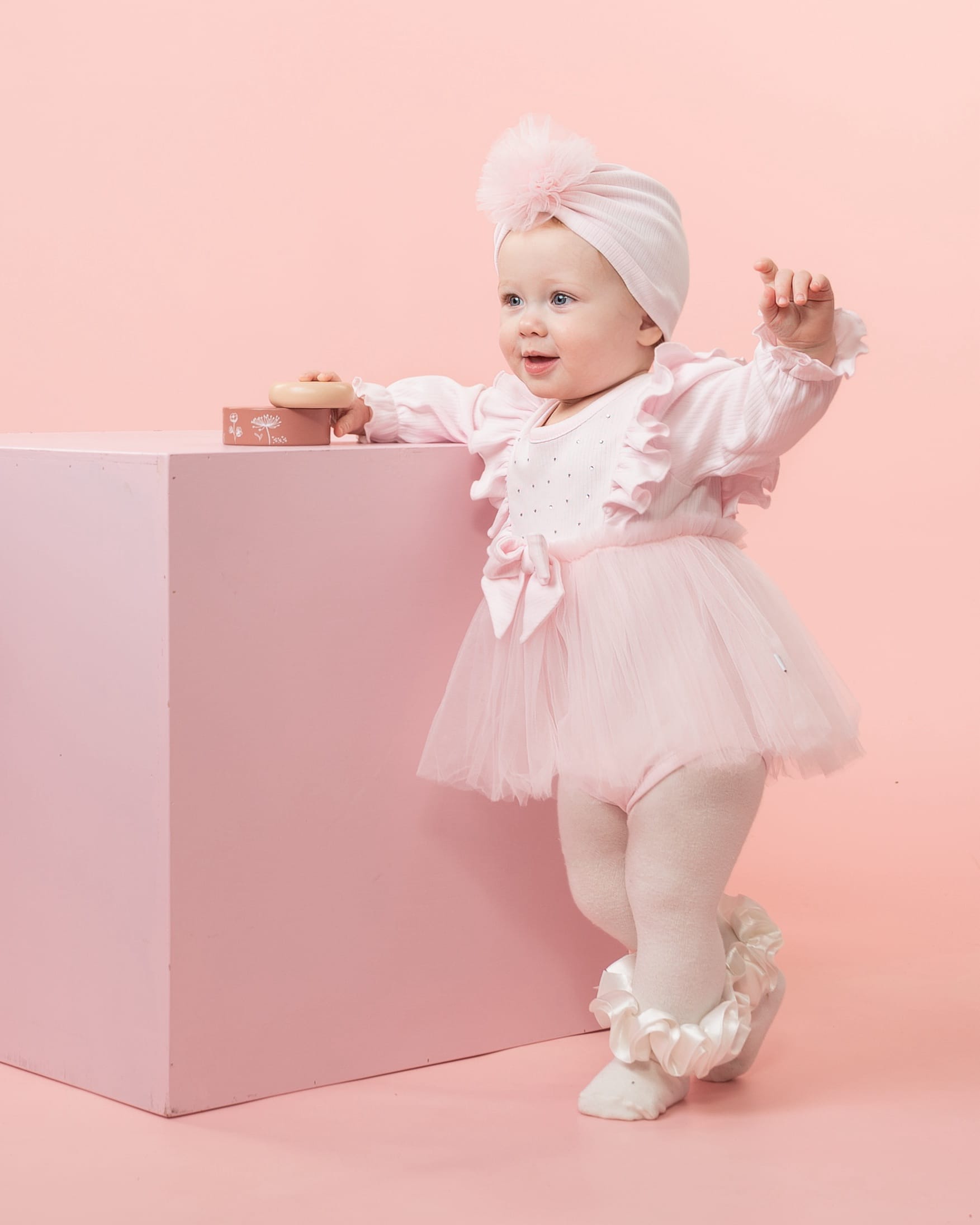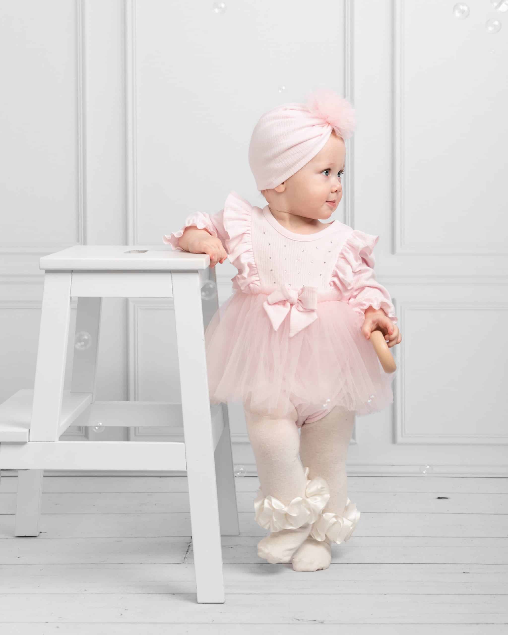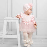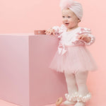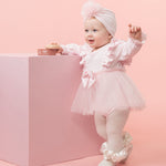 Baby Girls Pink Ribbed Tulle Long Sleeved Dress