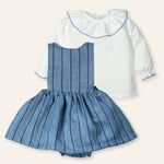 Mac Ilusion Baby Girls long sleeve blouse and blue stripe romper.