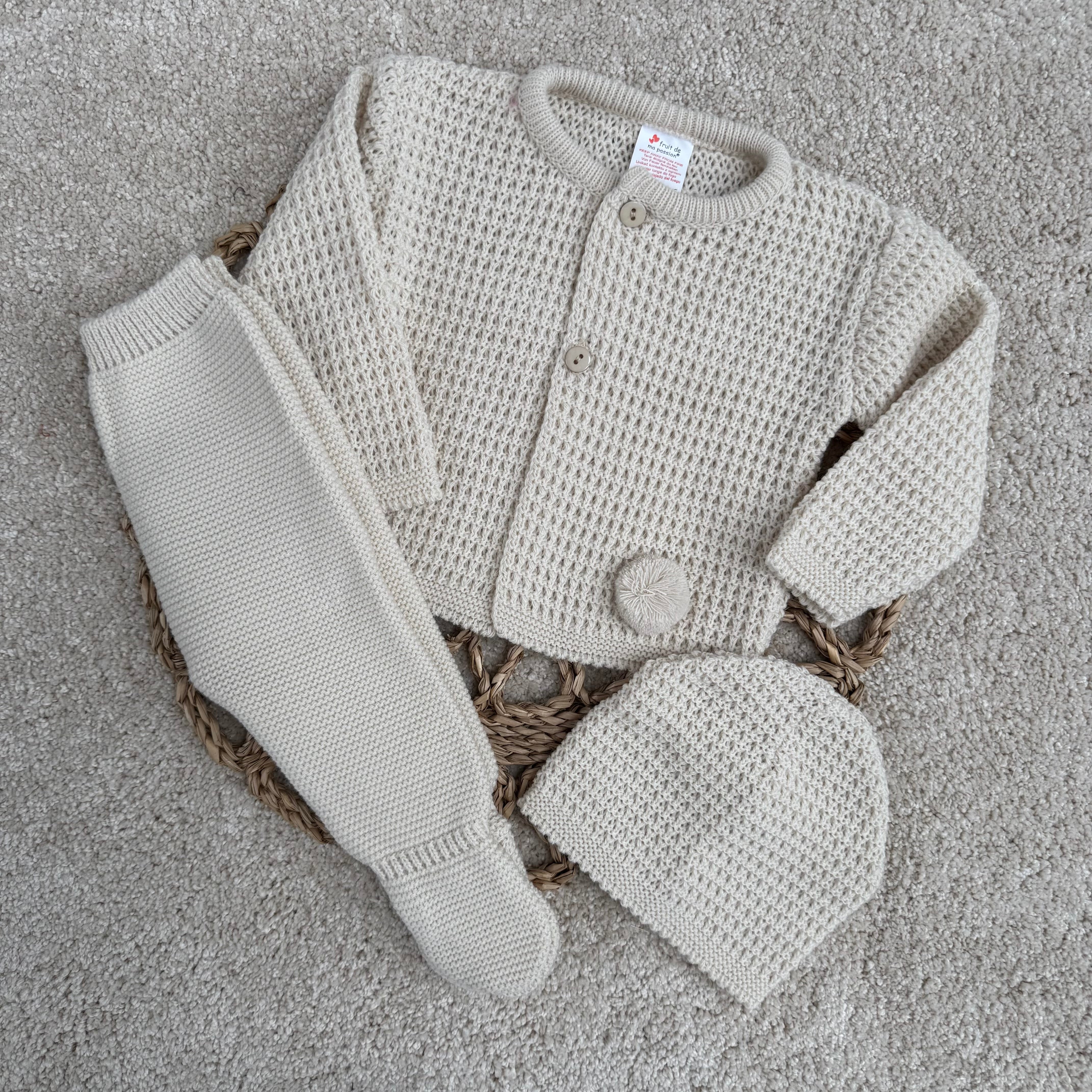 Baby Boy's Beige Pom Spanish Knitted Outfit