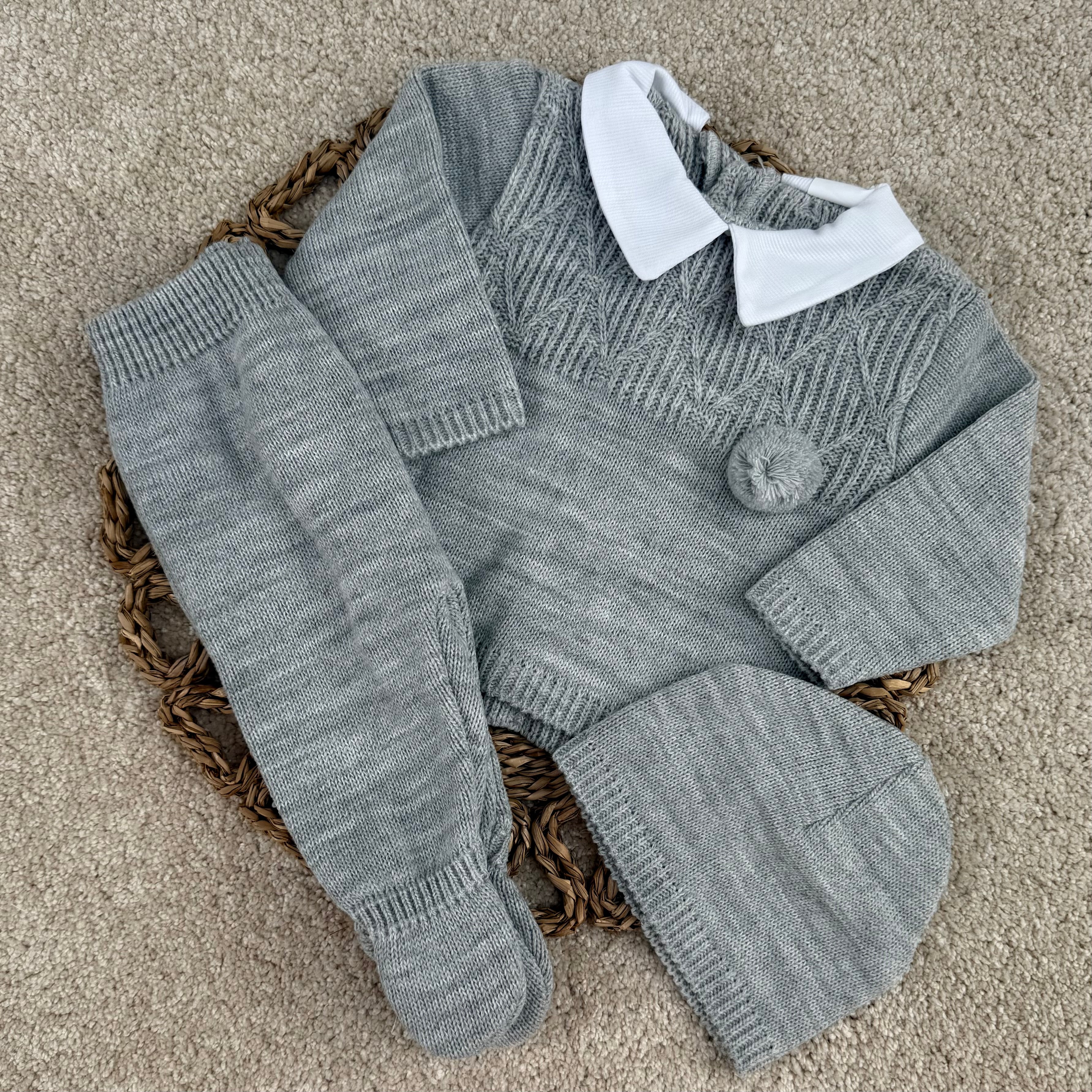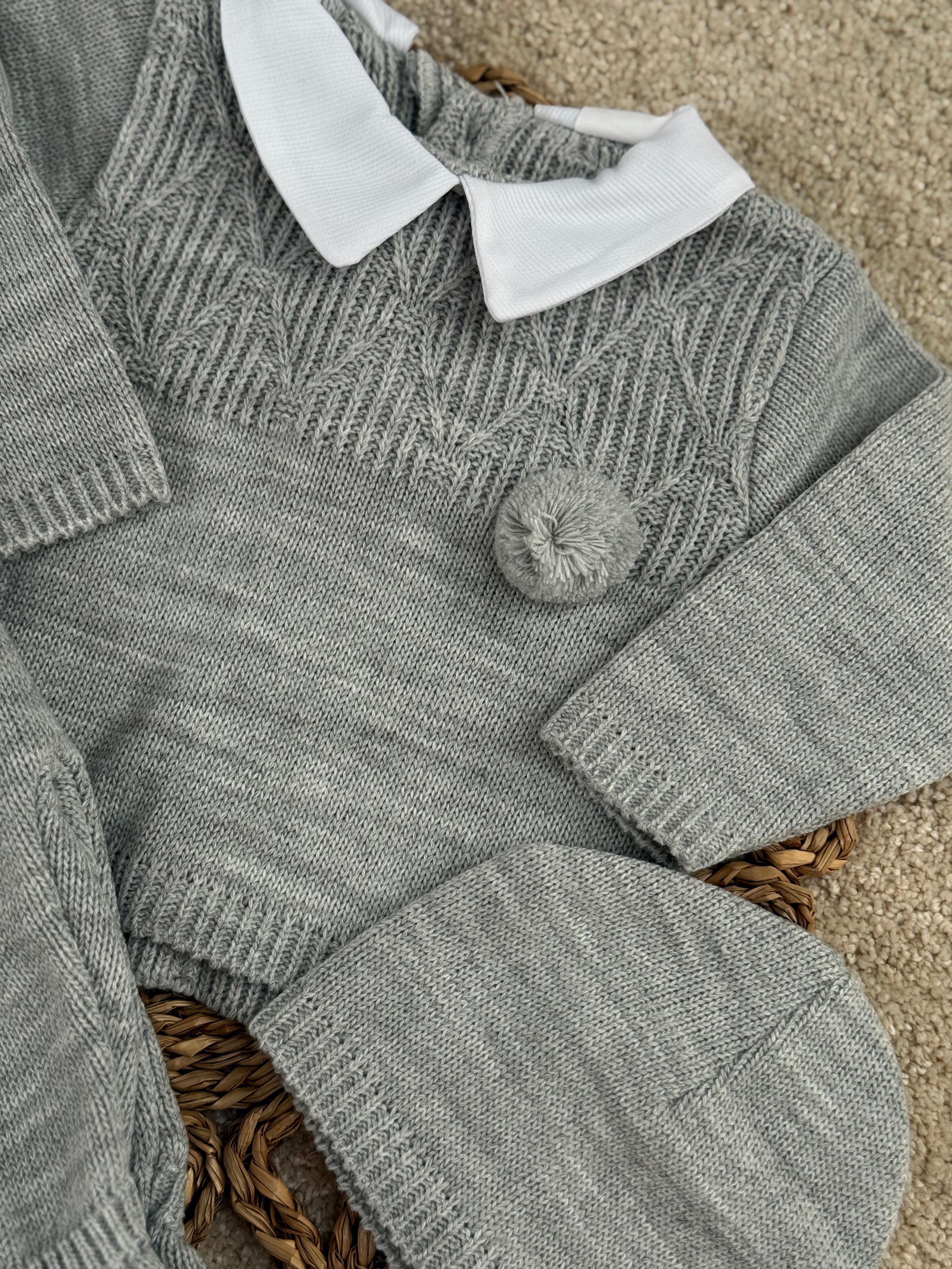 Baby Boy's Grey Pom Spanish Knitted Outfit