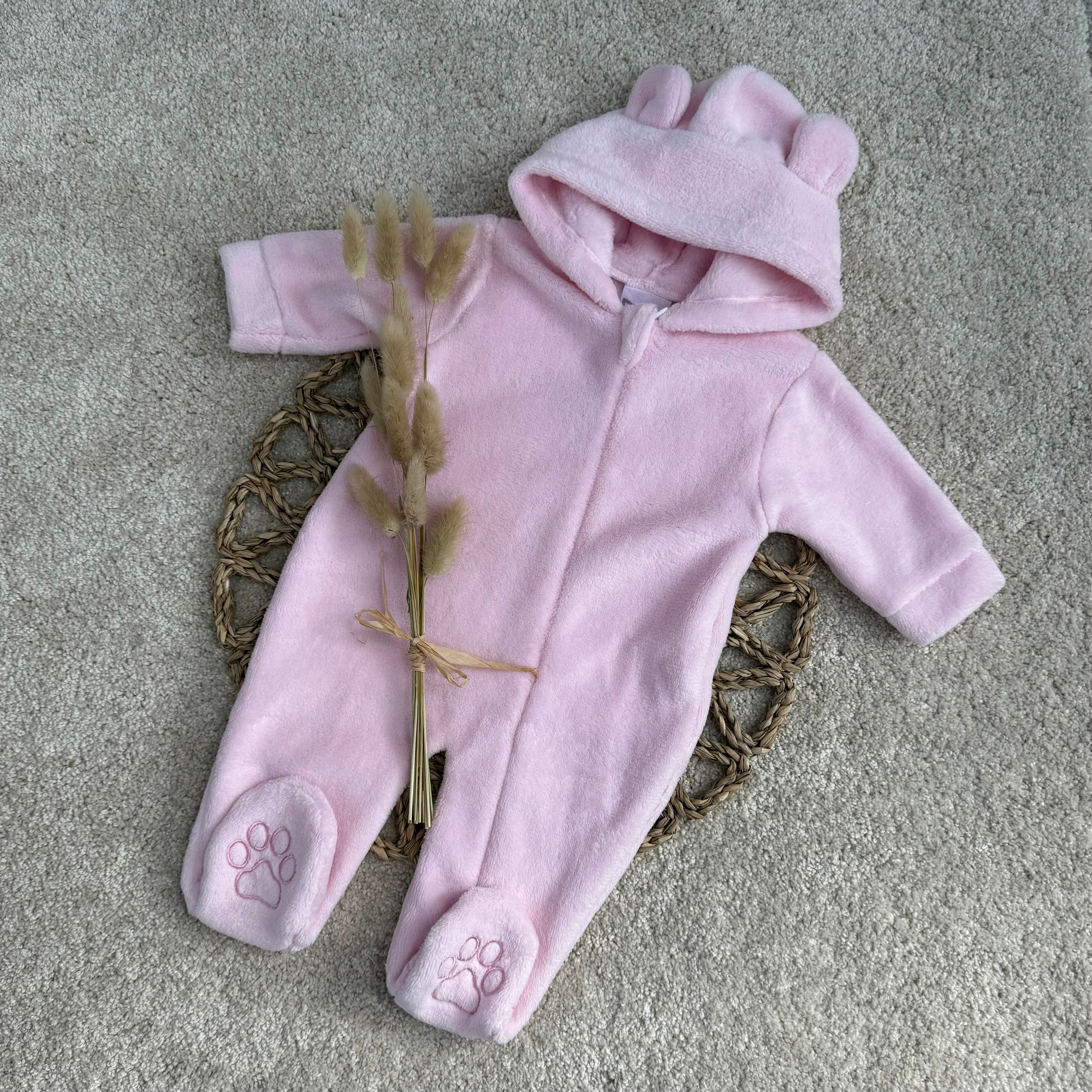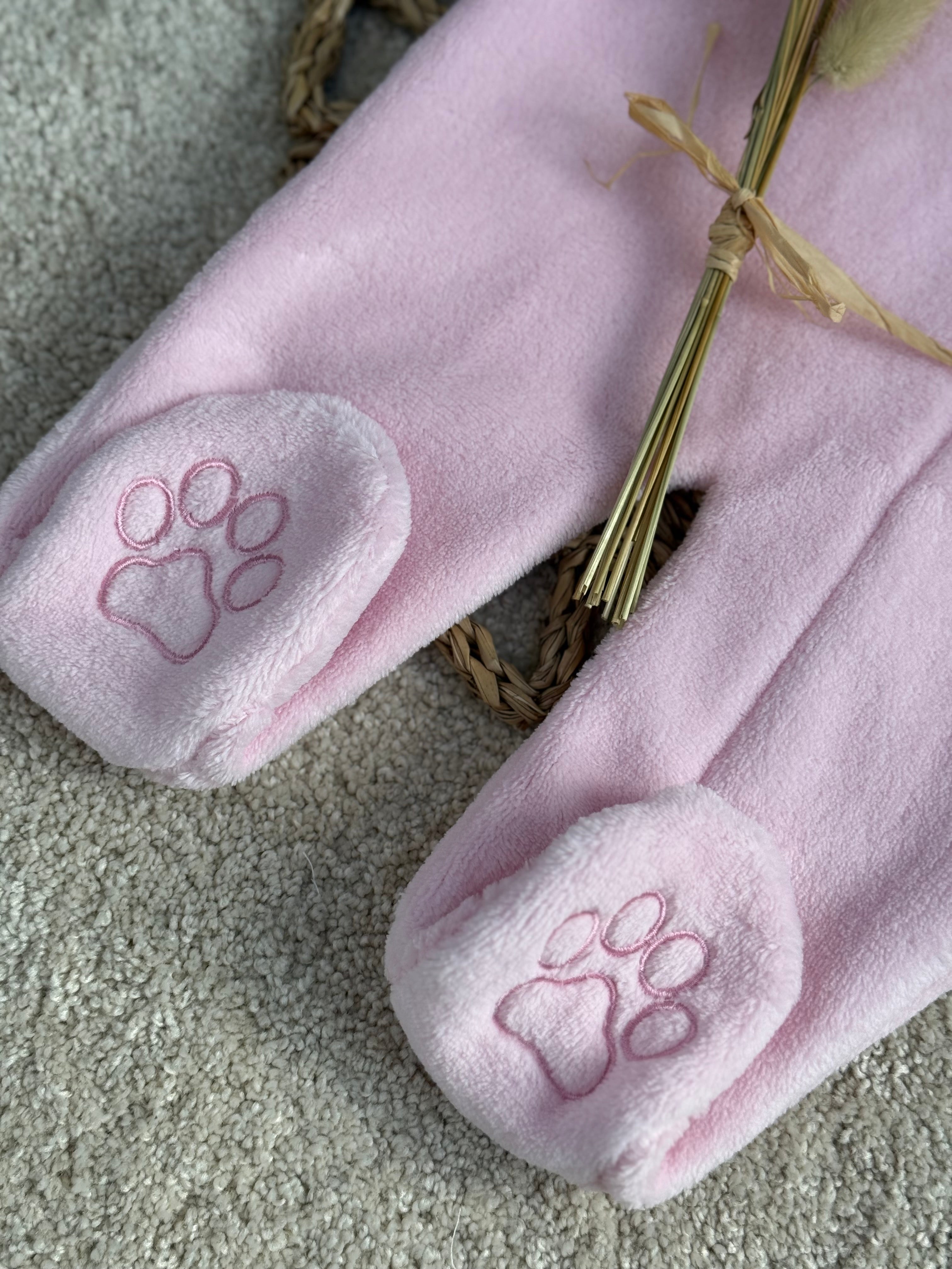 Keep your little one cozy and cute with our ultra-soft fleece sleepsuit, designed especially for baby. This adorable one-piece features a warm hood topped with sweet little bear ears, making it perfect for cuddly naps or chilly outings. The full-length sleeves and built-in feet ensure head-to-toe warmth, while the non-slip bear paw prints on the soles provide extra grip for early movers. Gentle on sensitive skin and easy to zip on and off, it’s as practical as it is precious—ideal for bedtime, playtime, or snuggly storytime. get yours personalised.
