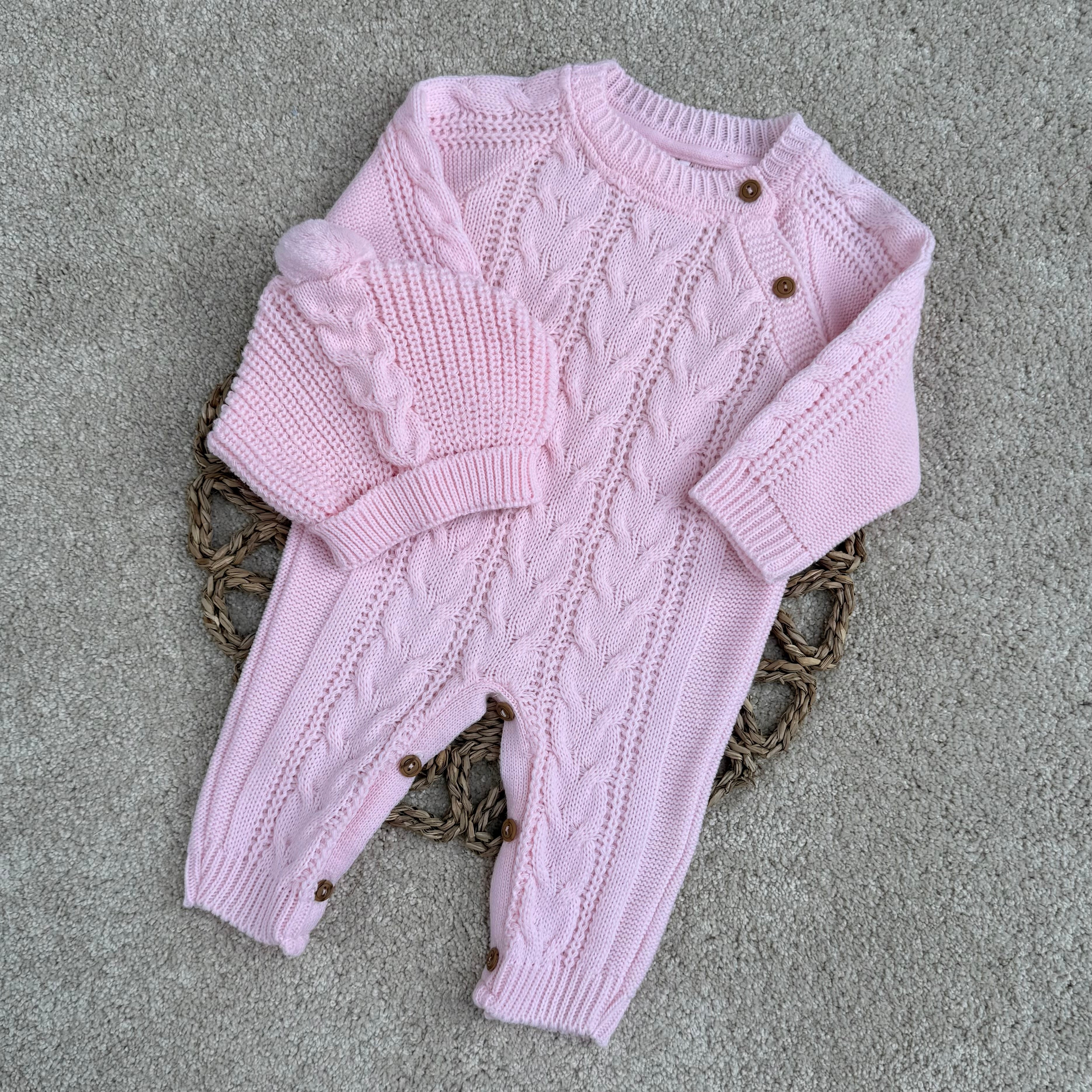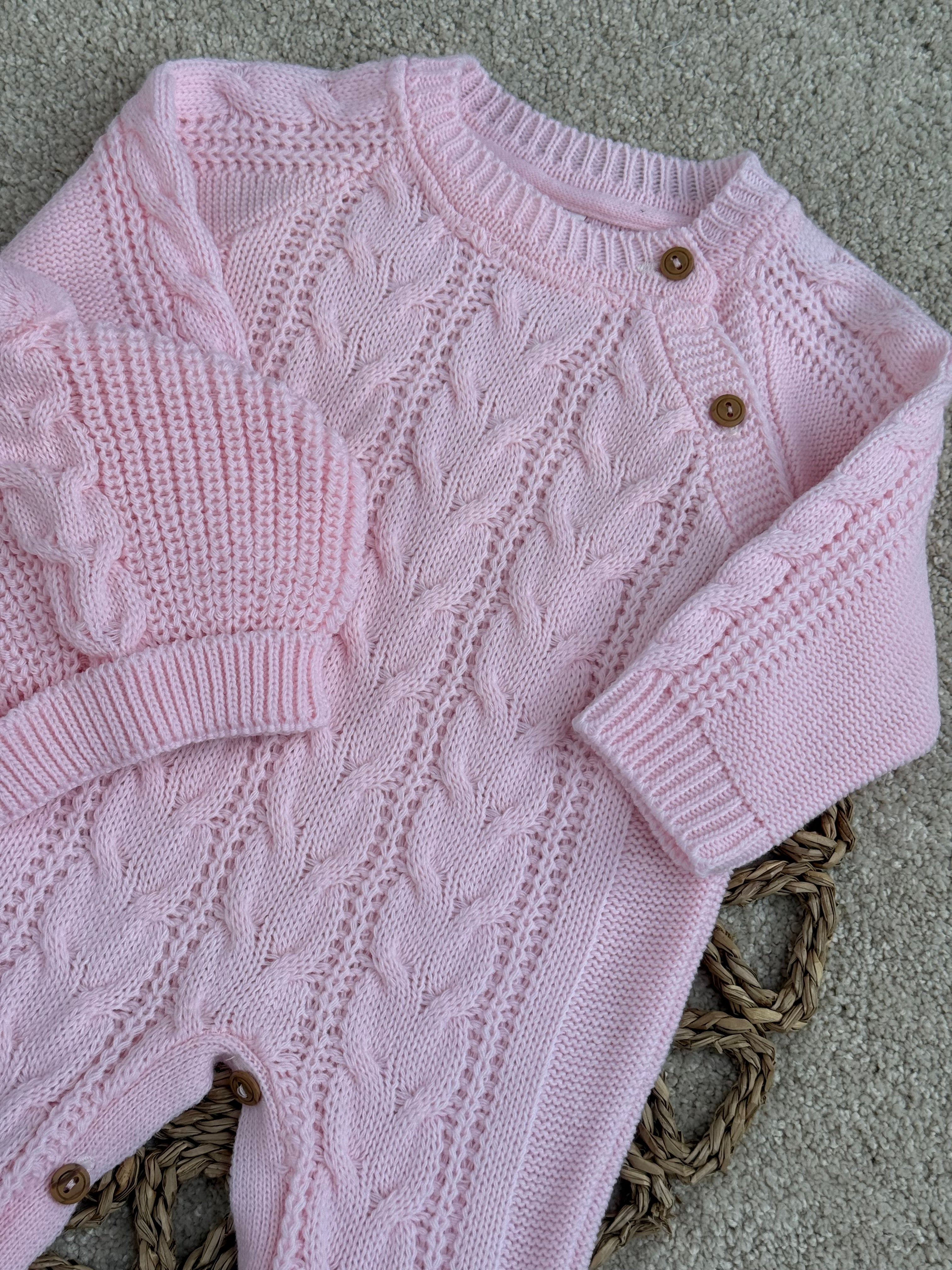 Baby Girl's Pink Spanish Knitted Romper With Hat - 6 Months