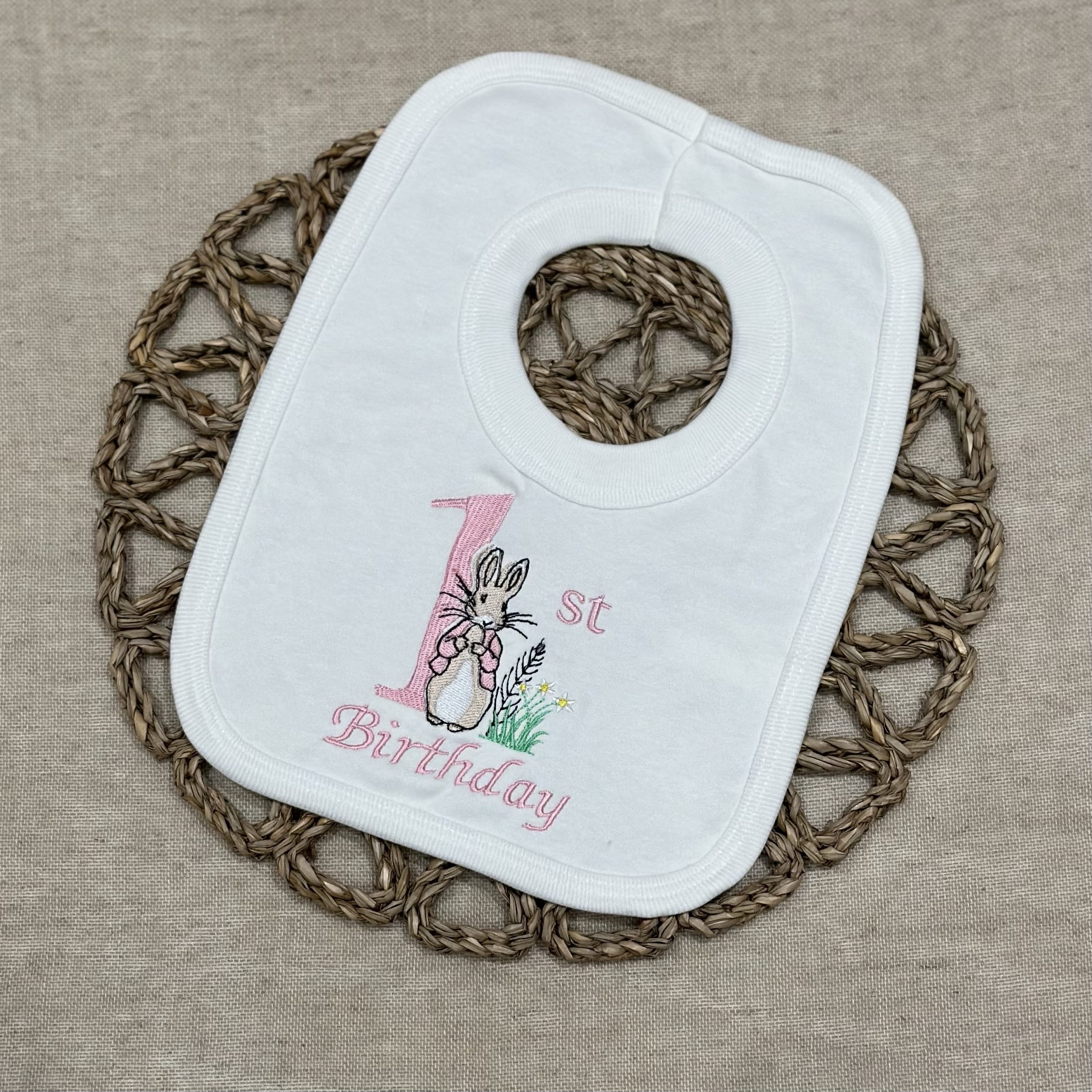 Flopsy Bunny Girls Flopsy Bunny 1st Birthday Bib