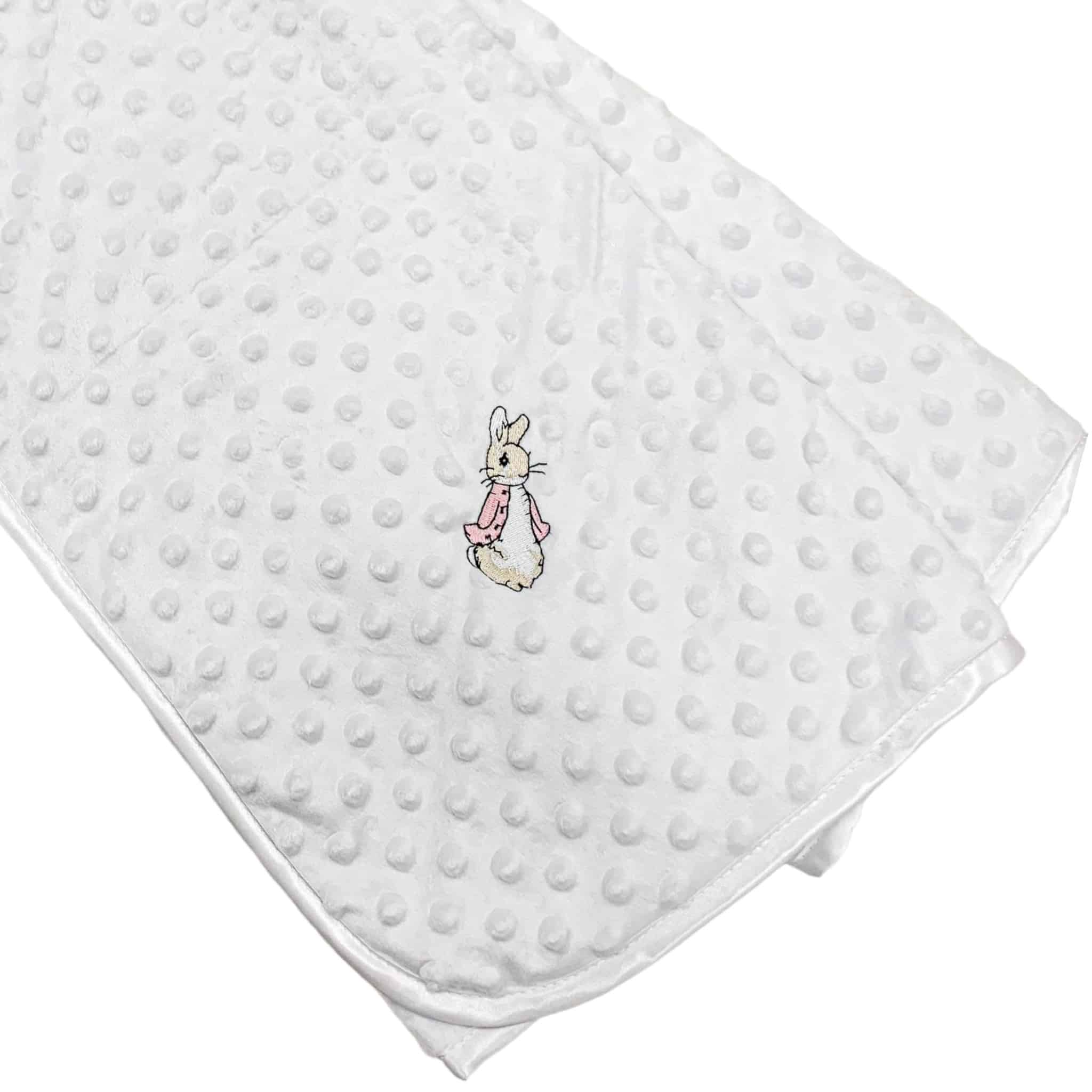 New Peter Rabbit & Flopsy Bunny Dimple Blanket - White Flopsy
