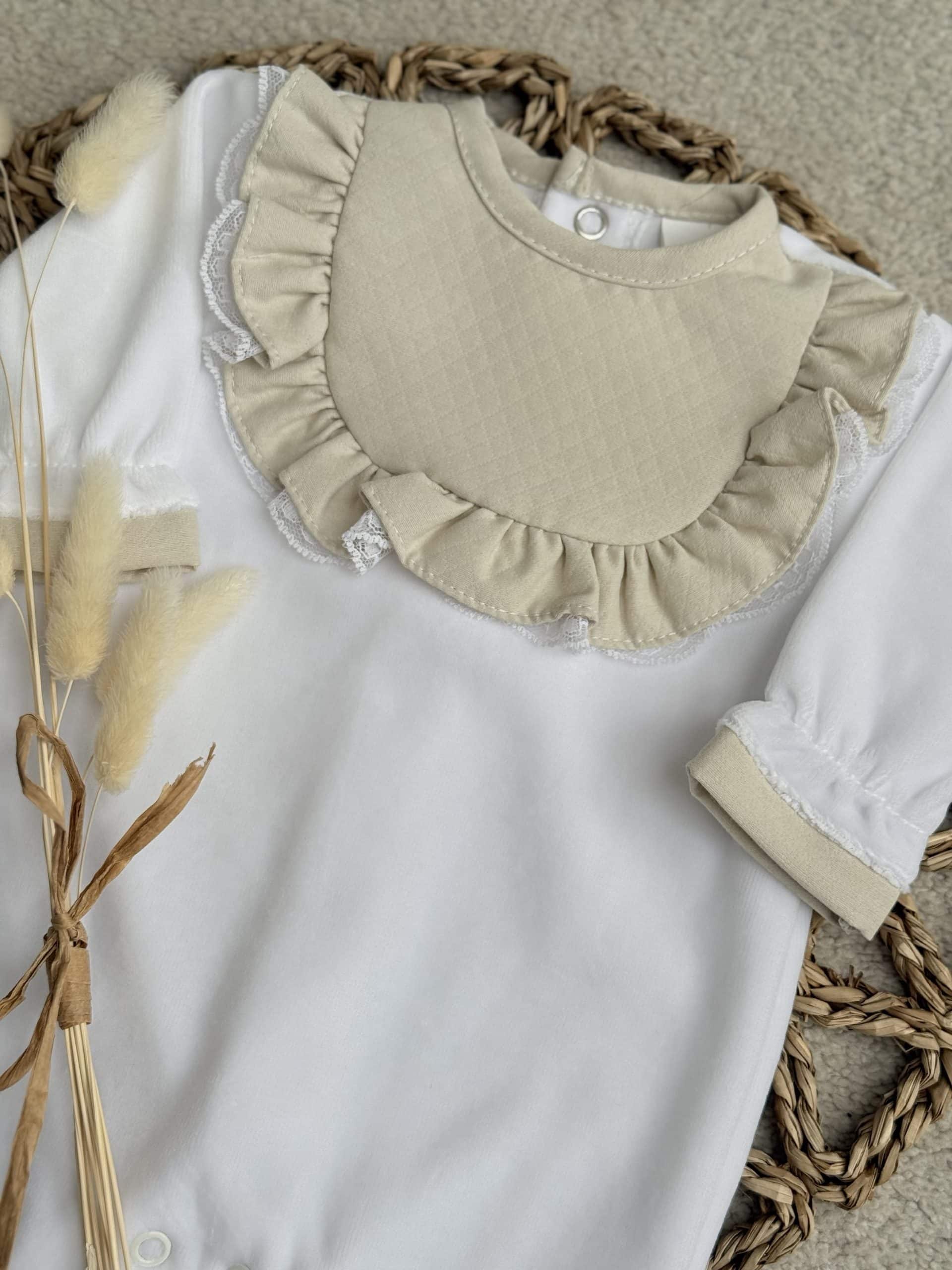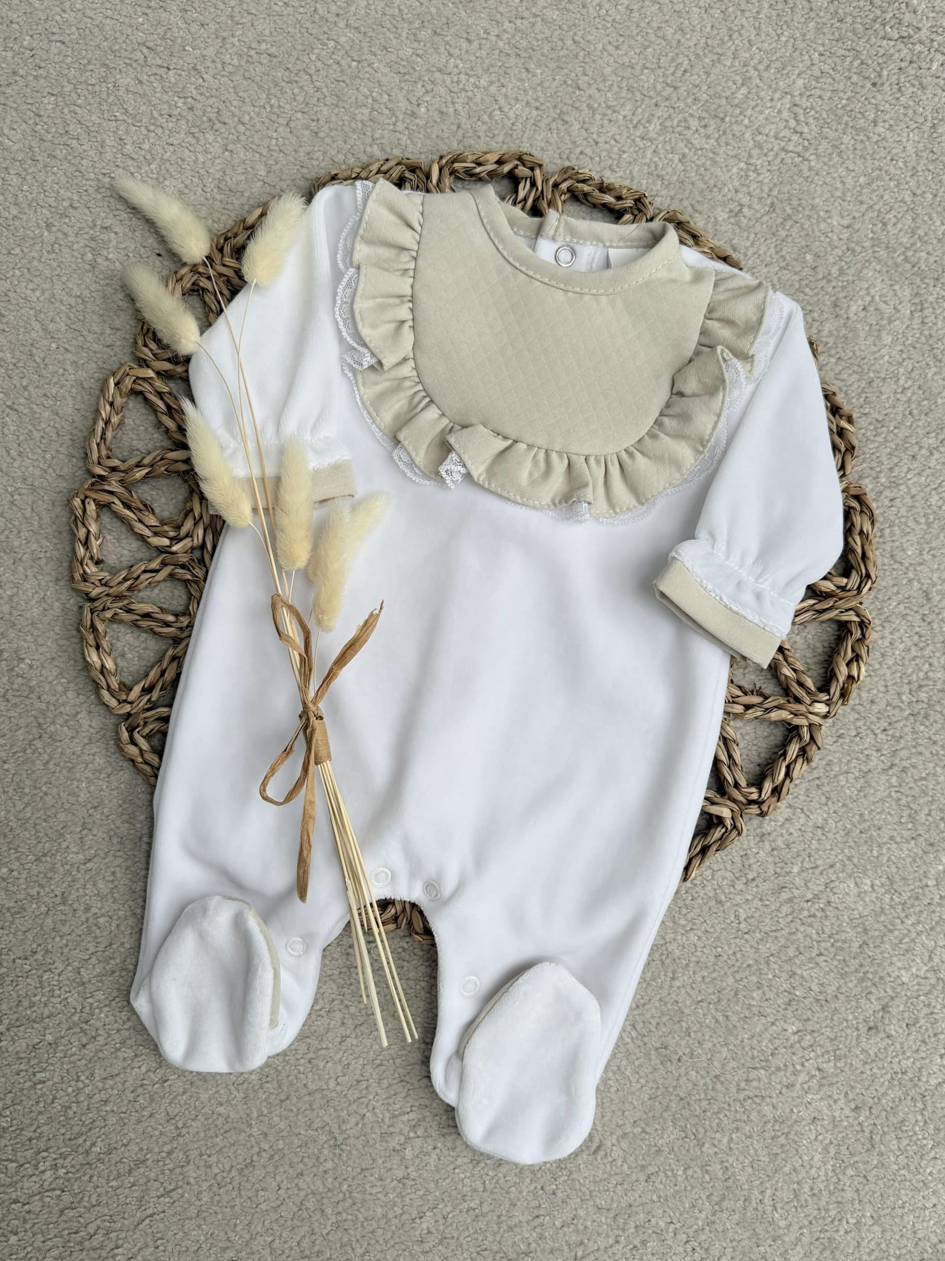 Baby Girl's Beige & Cream Velour Babygrow