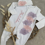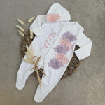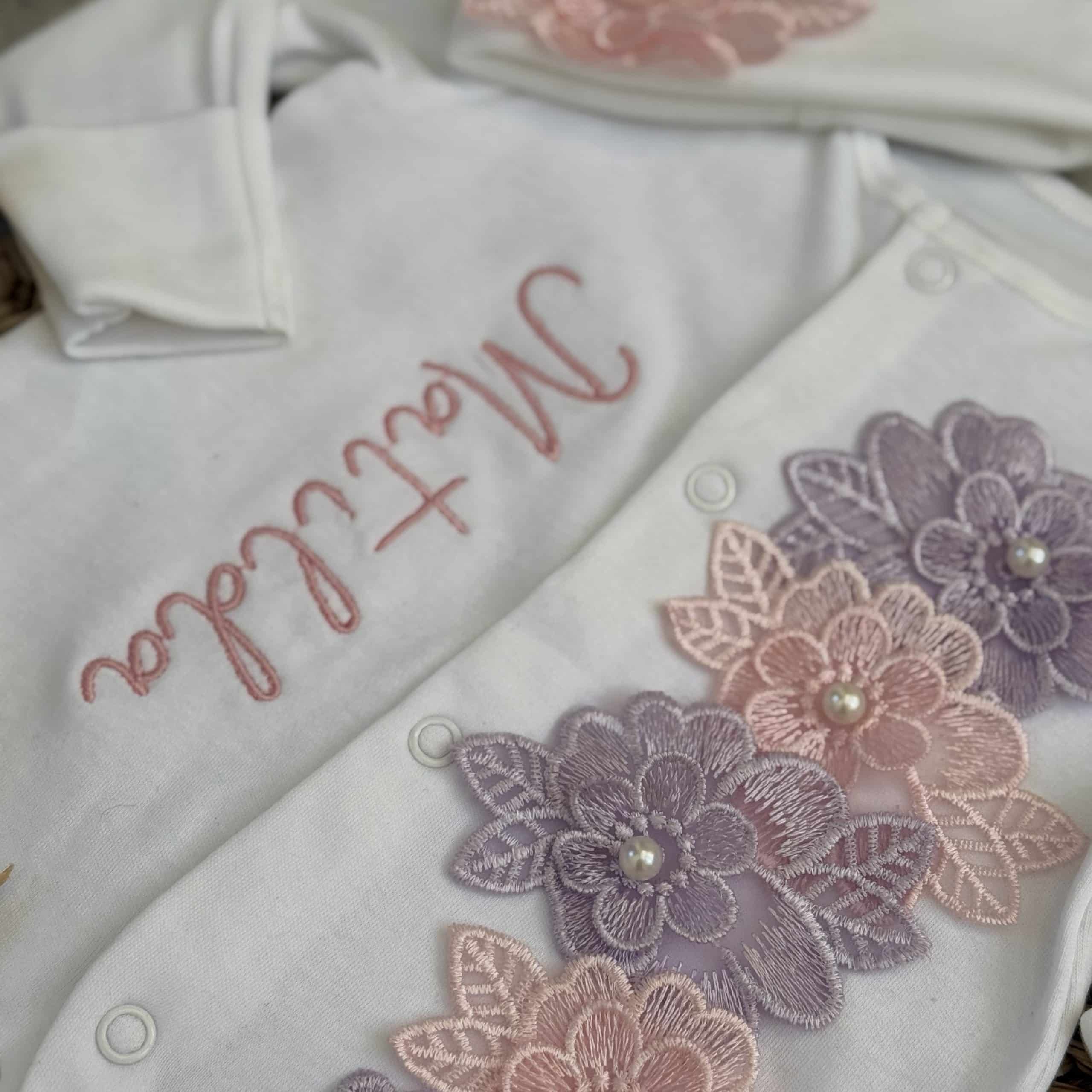 Baby Girls Lilac and Pink Flower Baby Grow With Hat