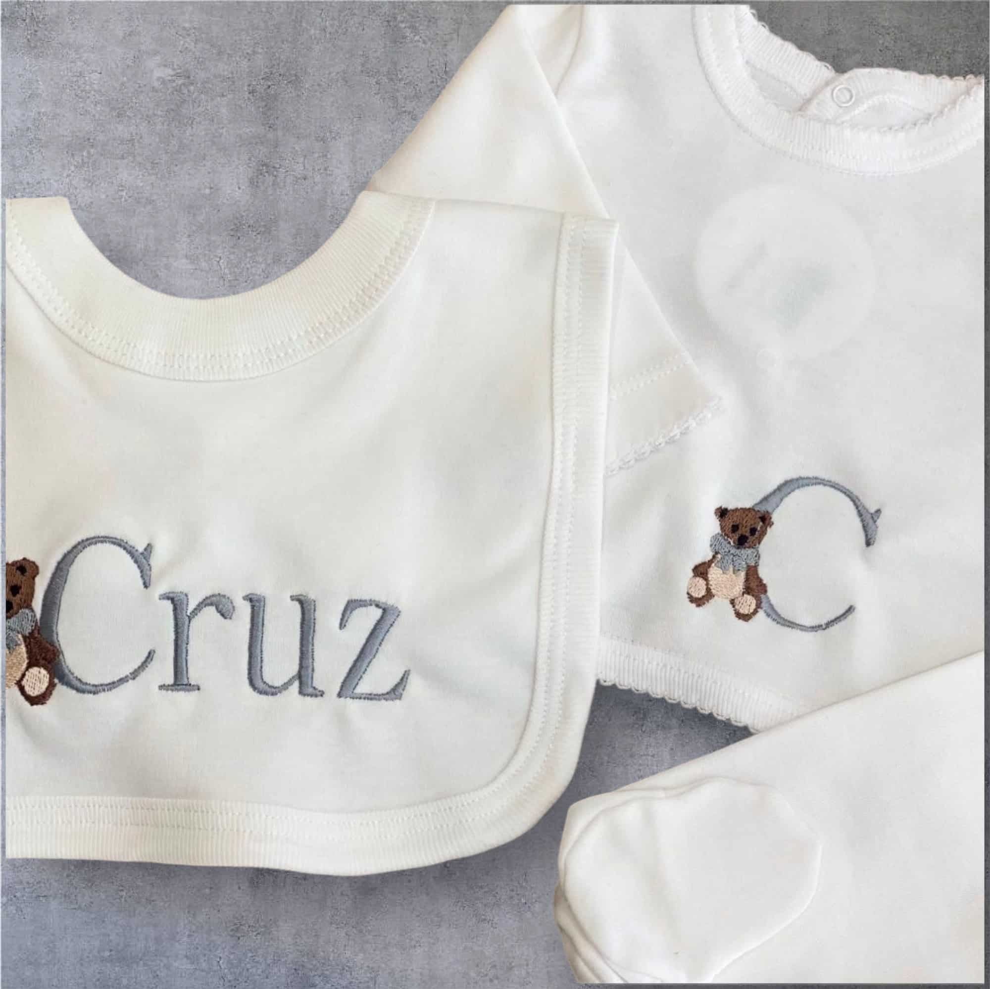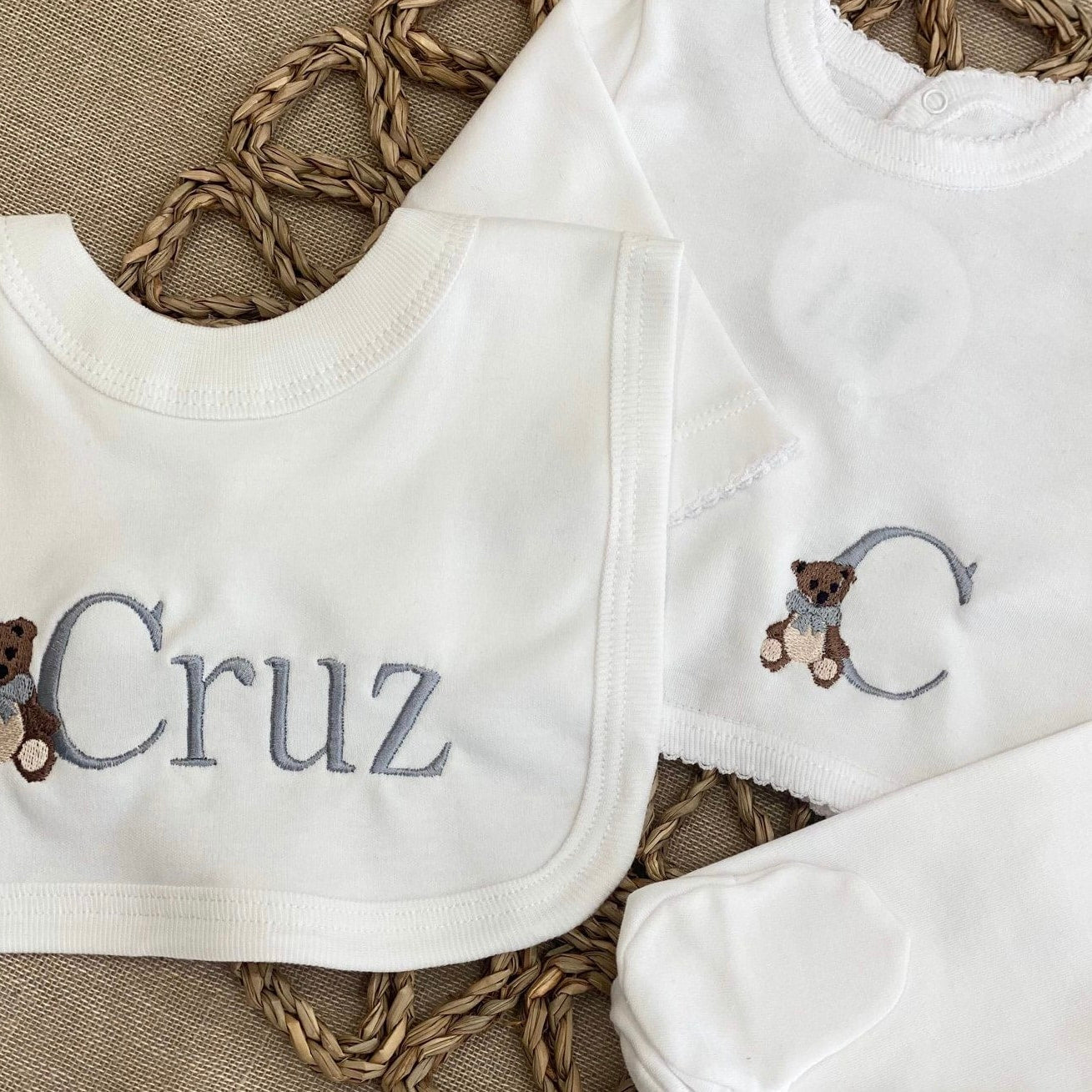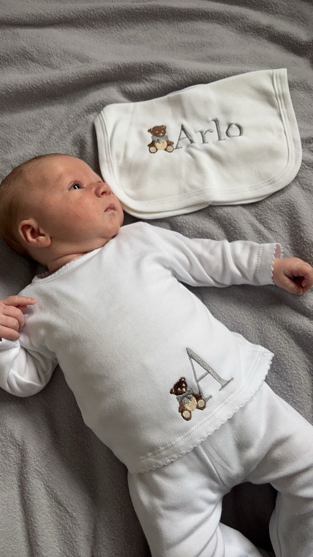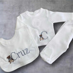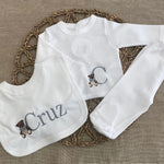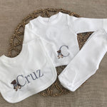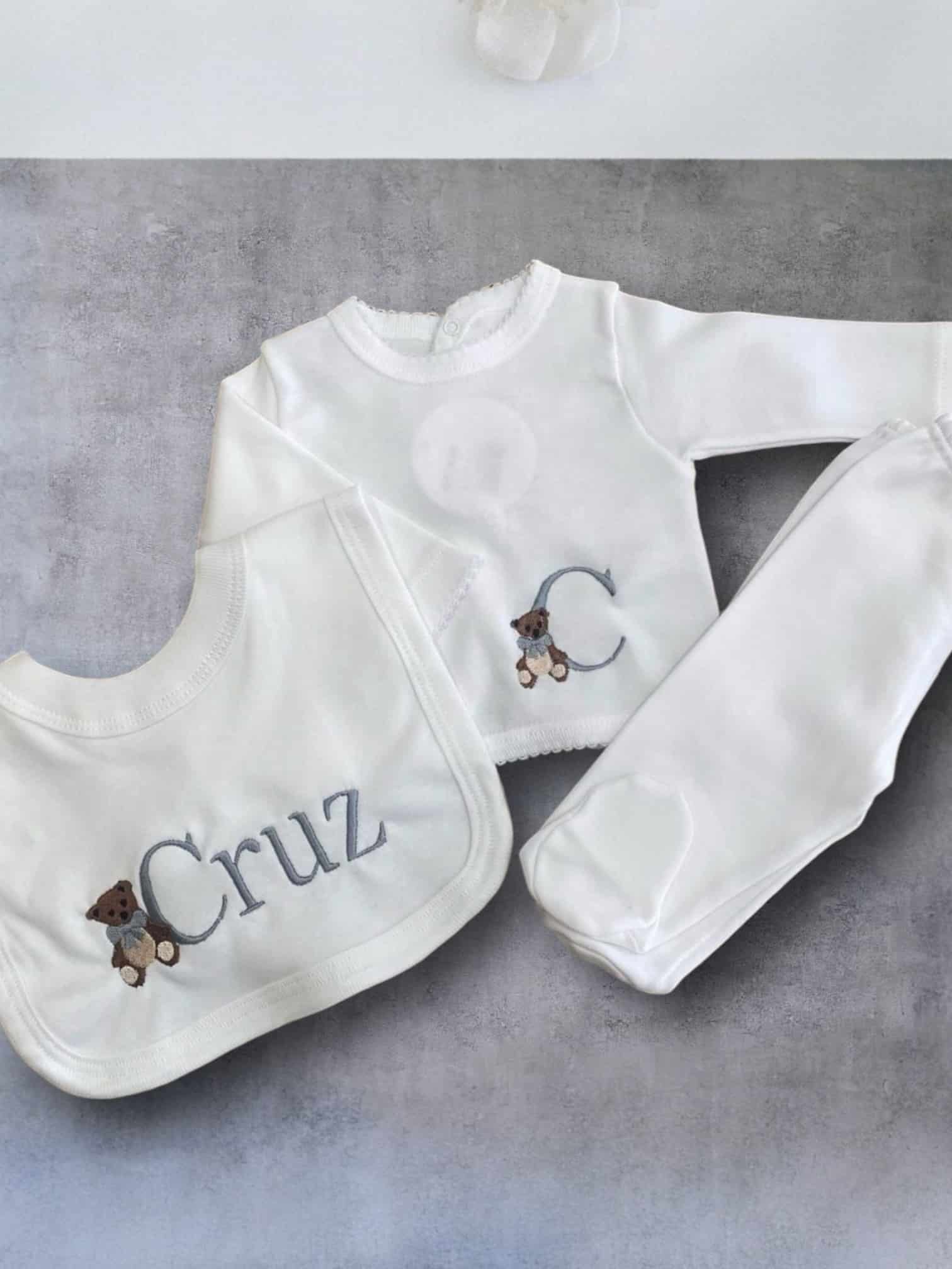 Babys Grey Cotton Personalised 3 Piece Outfit