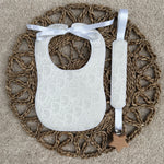 Baby's Handmade White Dior Bib & Dummy Clip Set