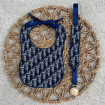 Baby's Navy inspired Dior Bib & Dummy Clip Set
