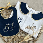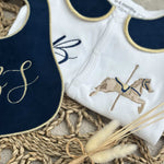 Boys Gold Horse Handmade Sleepsuit And Bib