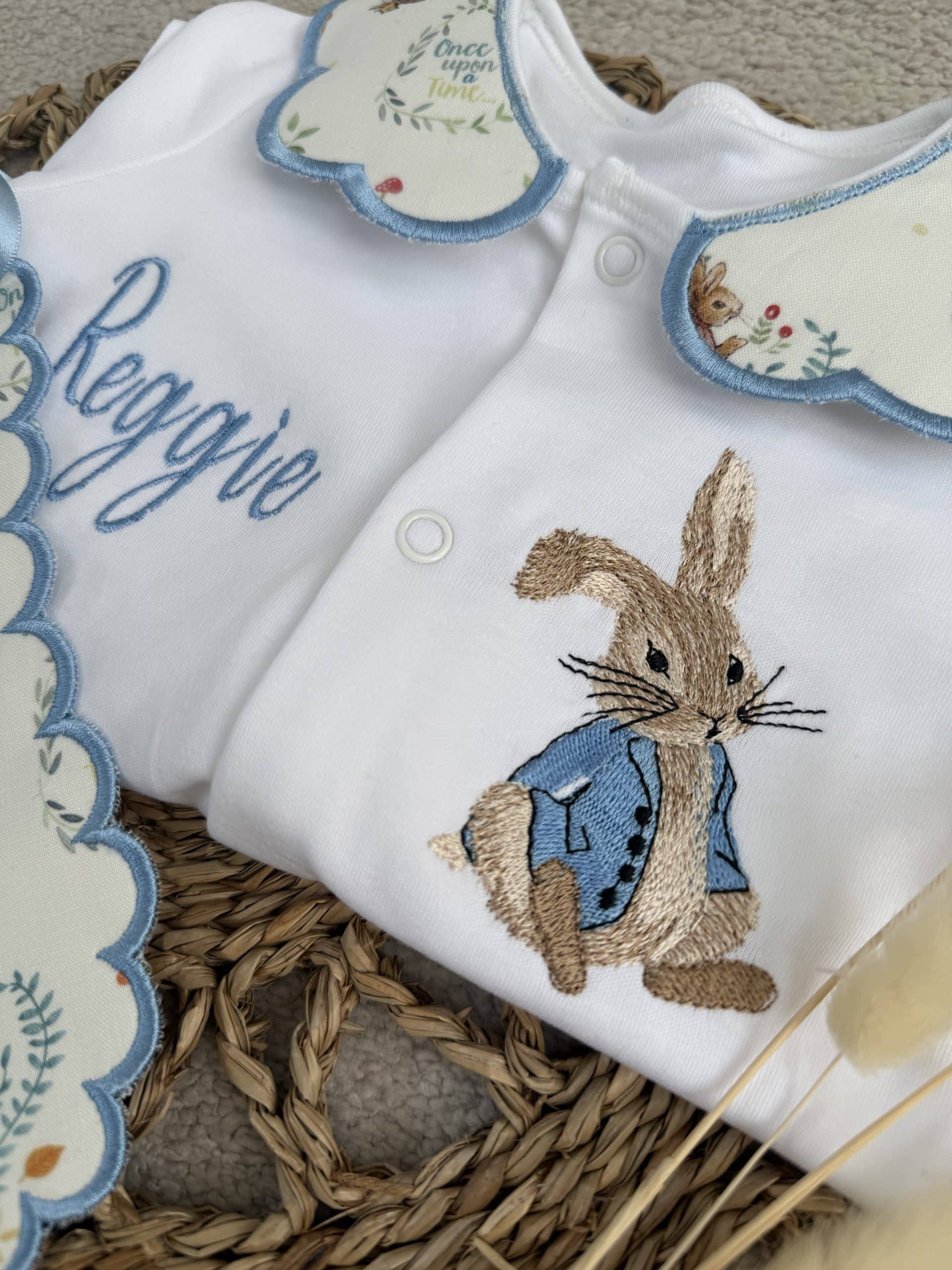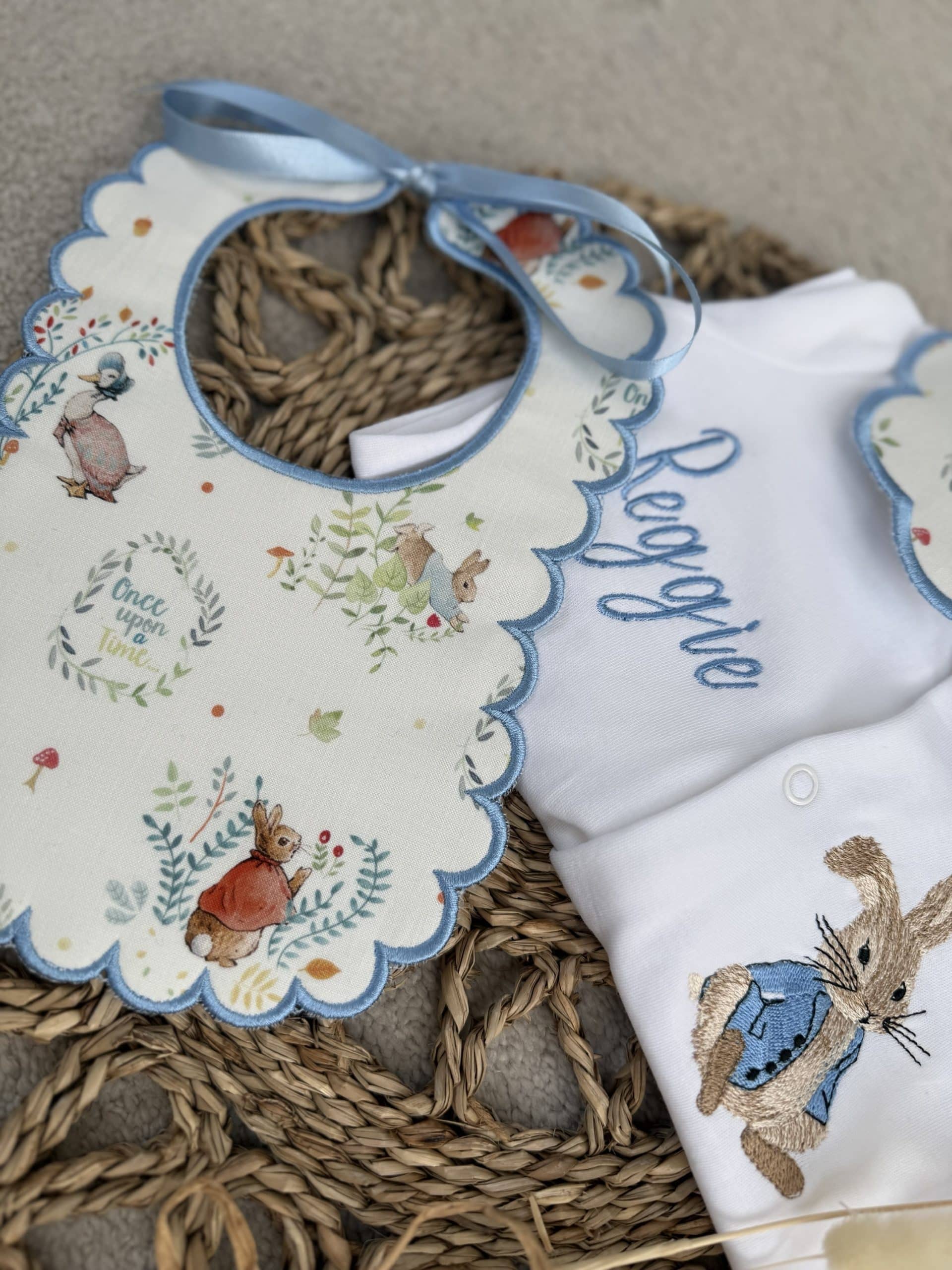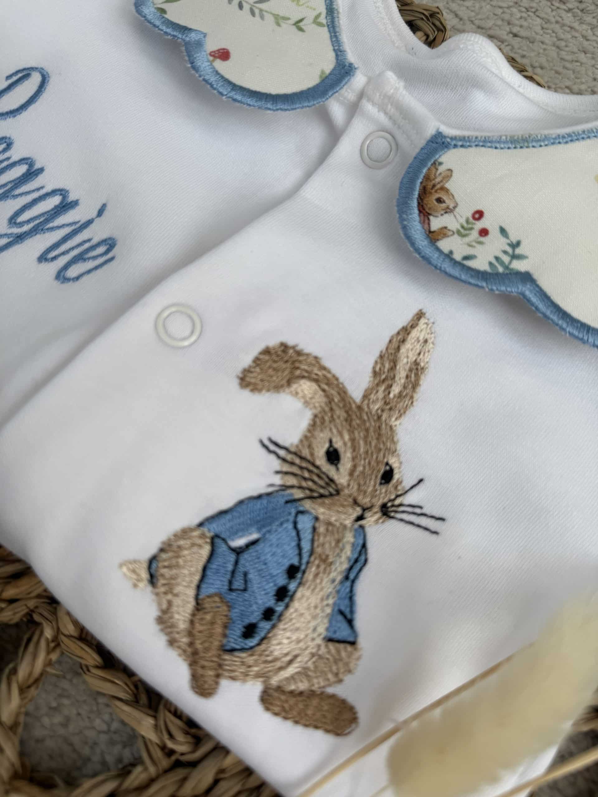 Boys Peter Rabbit Handmade Sleepsuit And Bib