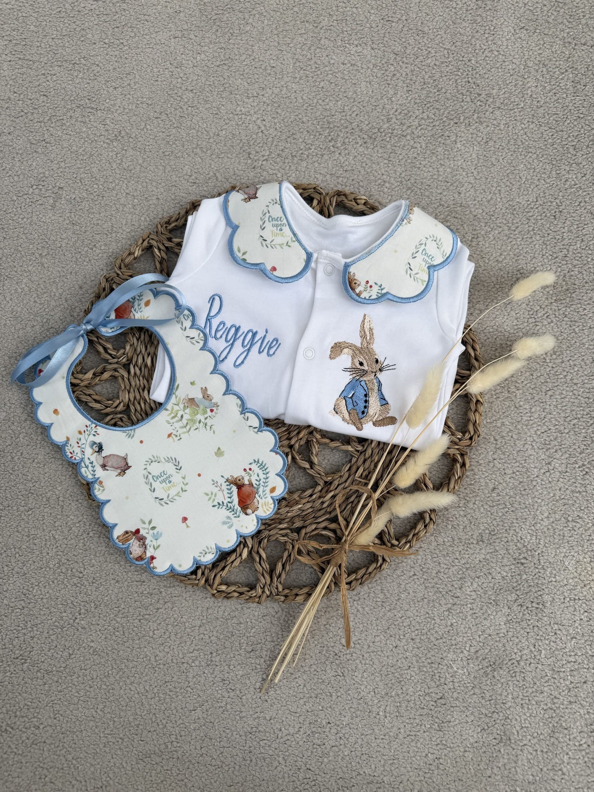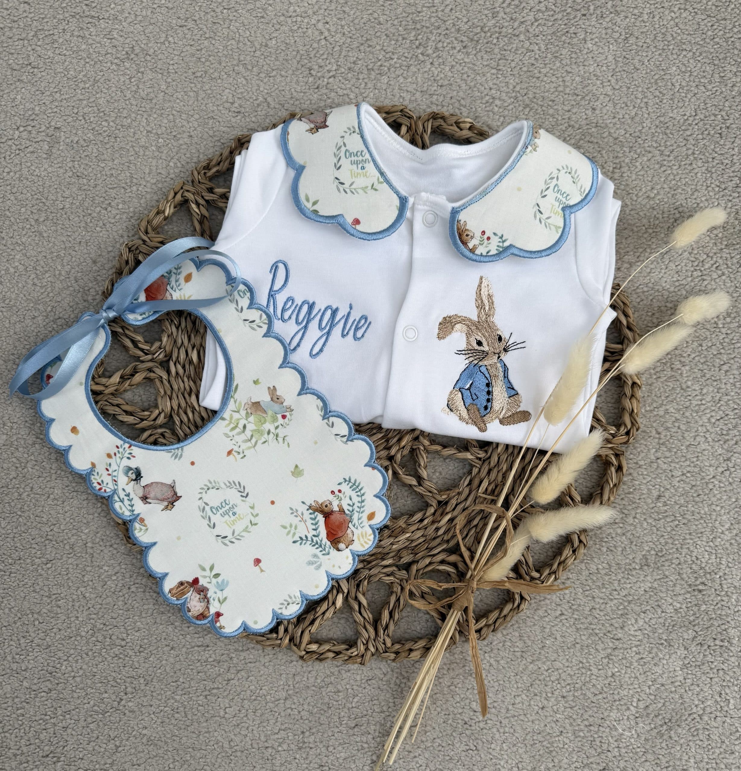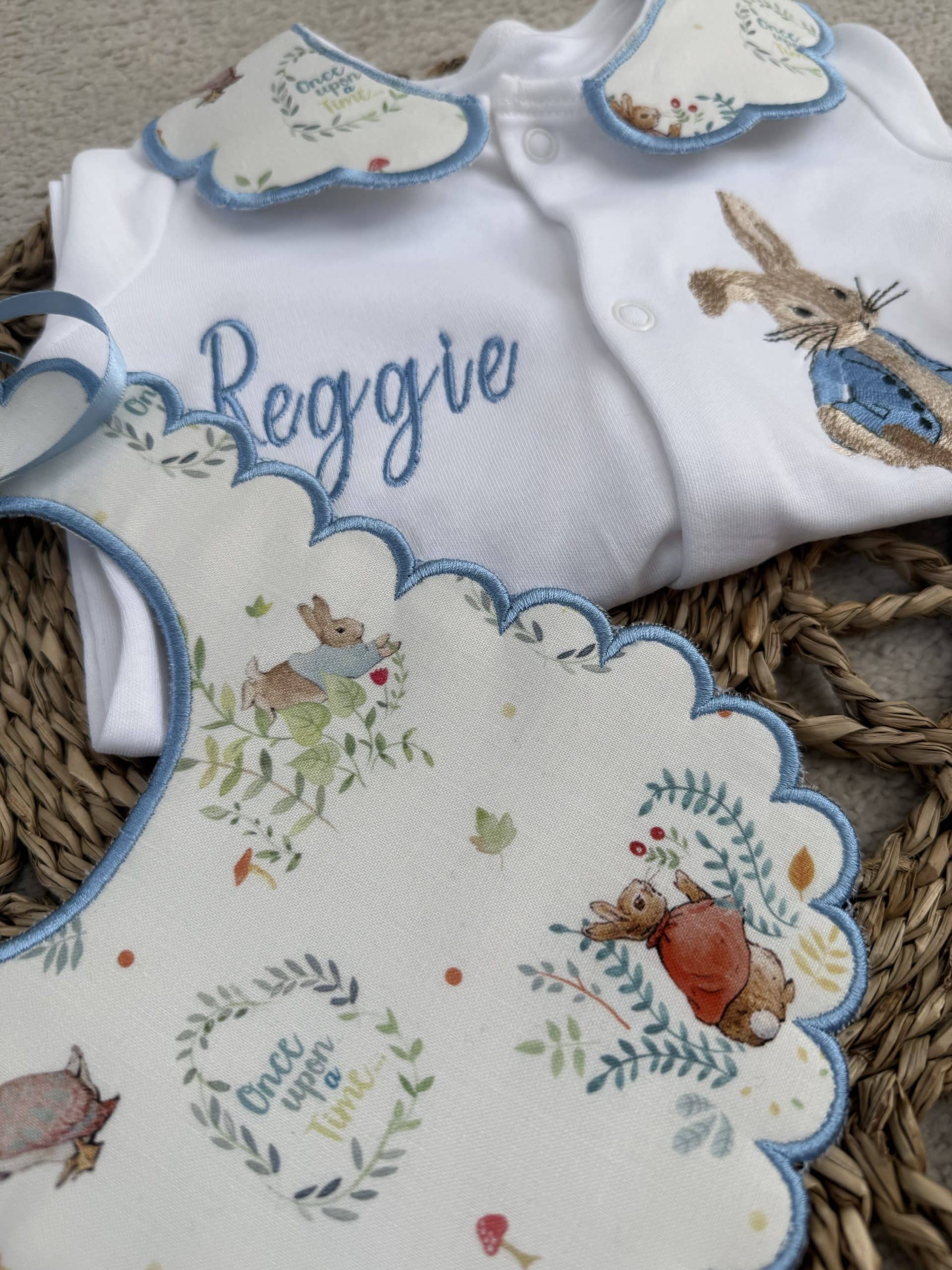 Boys Peter Rabbit Handmade Sleepsuit And Bib