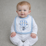A timeless keepsake for your little one 💙 Our personalised white baby grow and matching bib feature a beautiful blue hot air balloon design with your baby’s name embroidered for a bespoke finish.