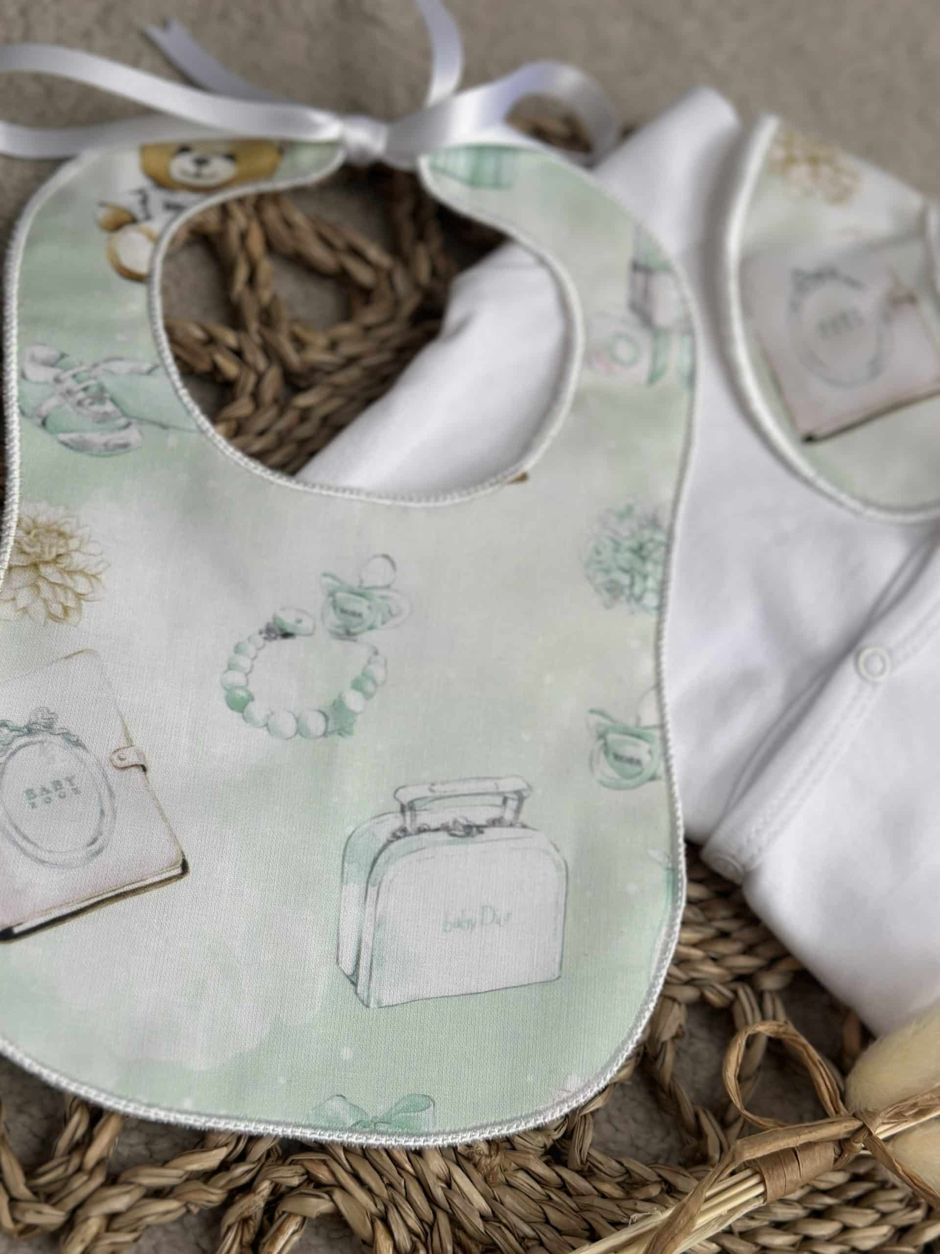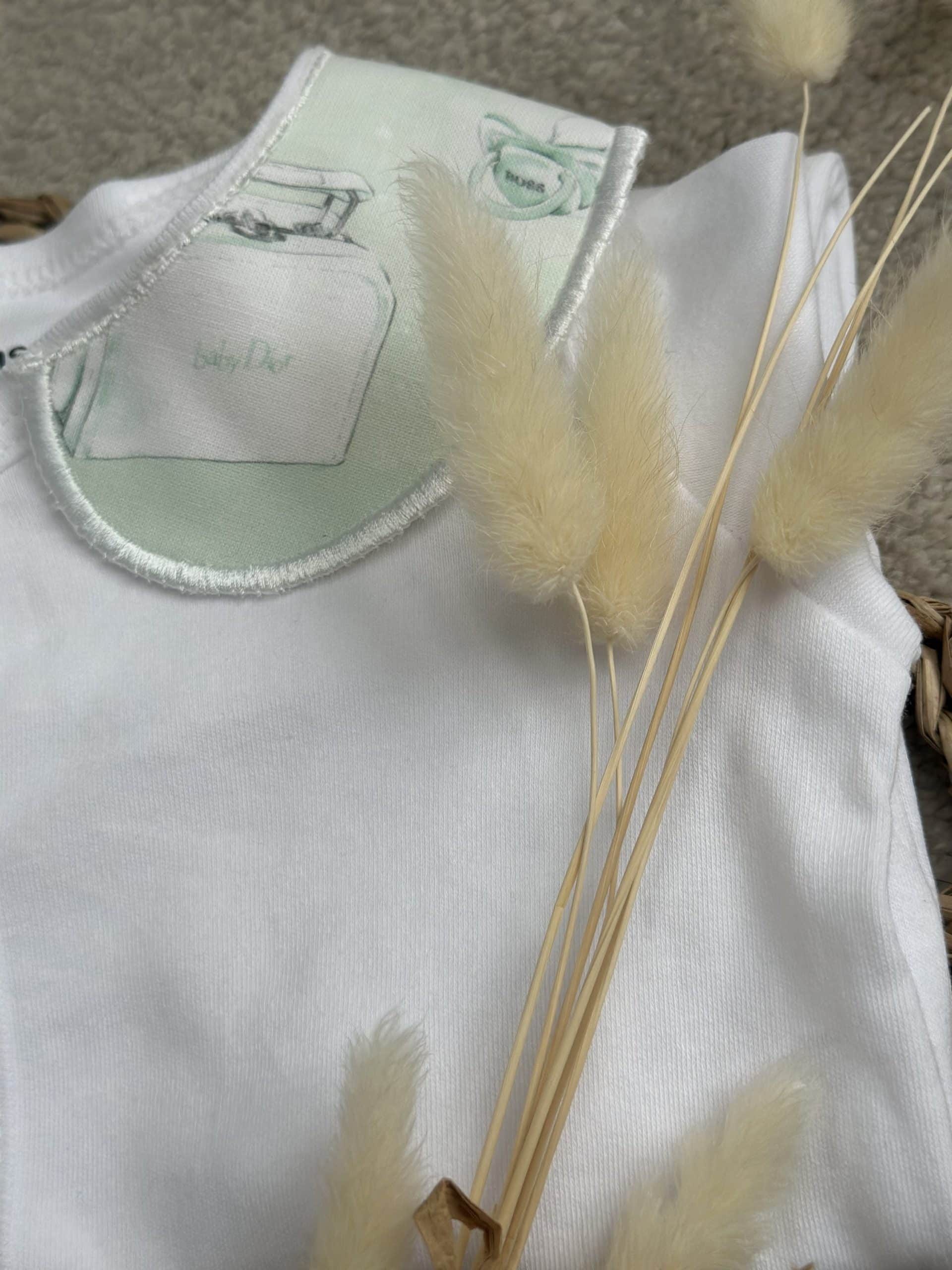Unisex Mint Dior Handmade Sleepsuit And Bib
