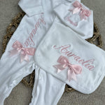 Perfect Little Thing Girls Bow Personalised Sleepsuit Set - Pink