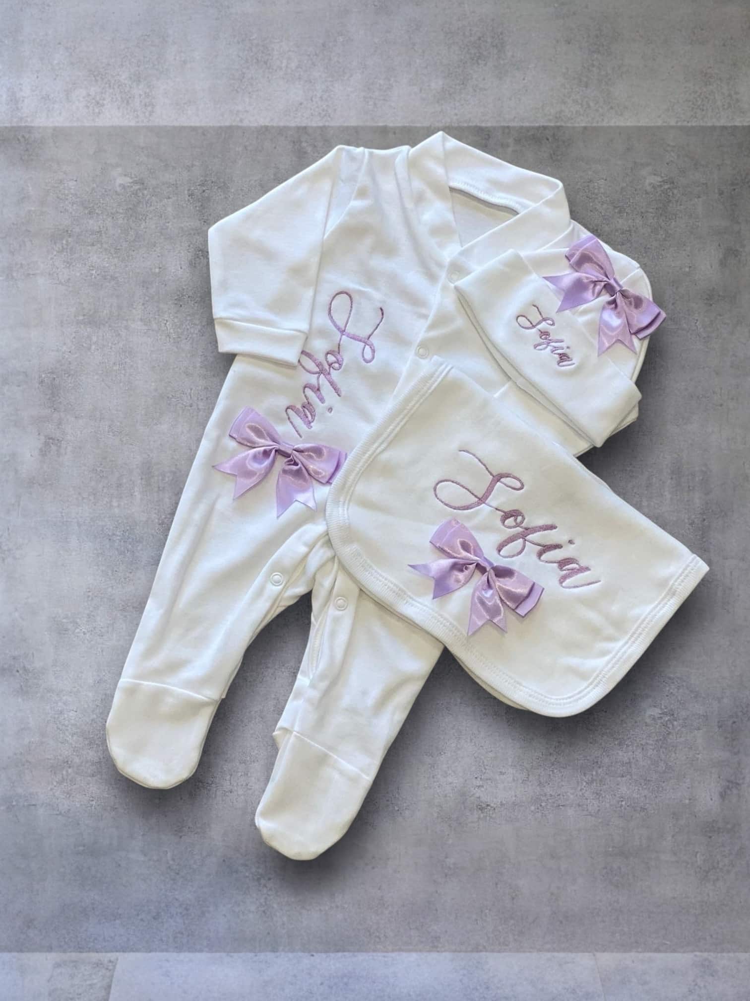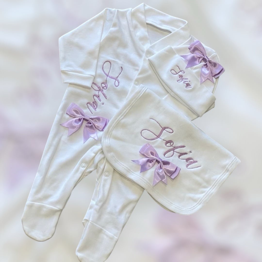 Girls Bow Personalised Sleepsuit Set - Lilac