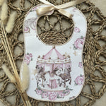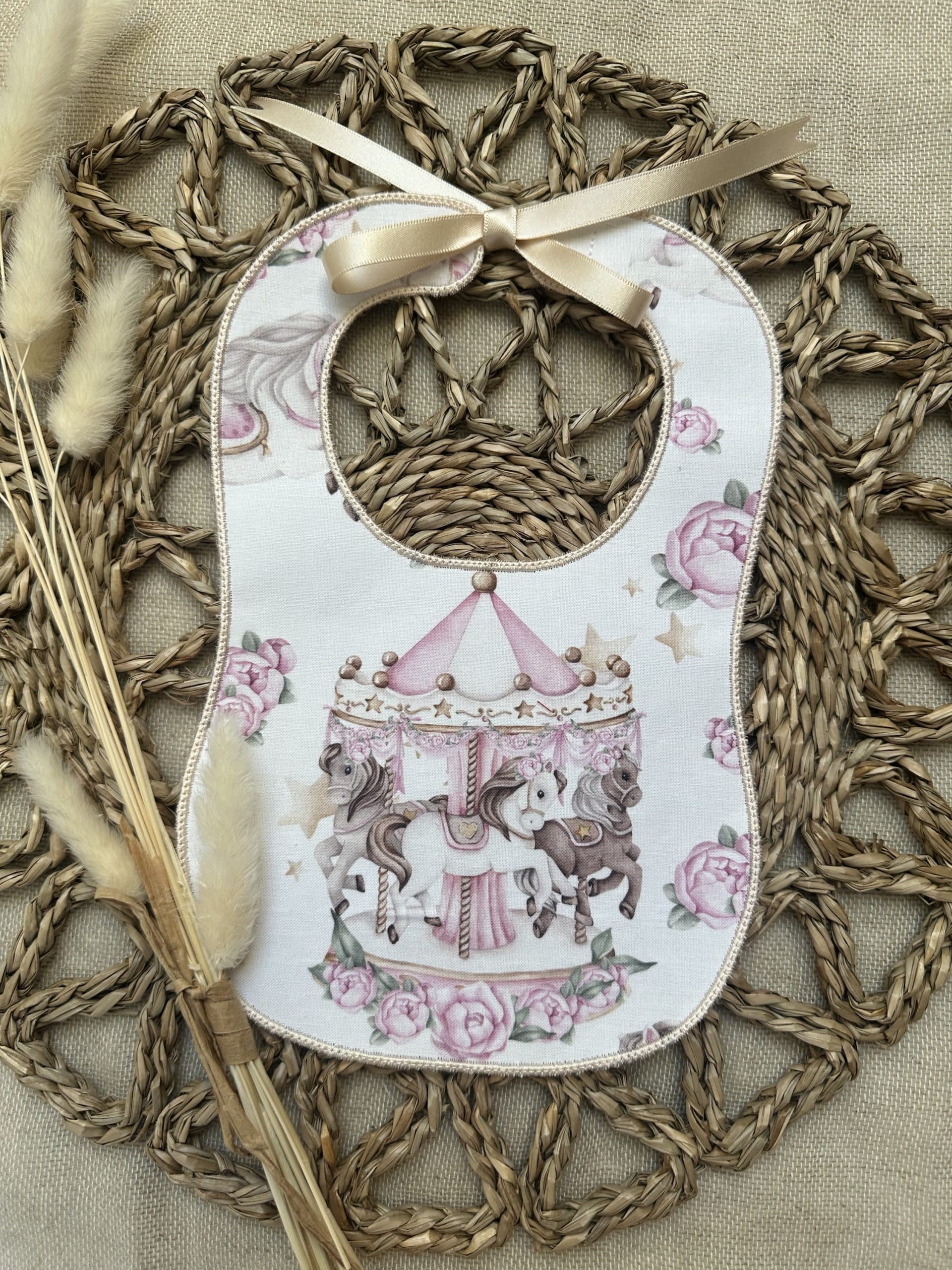 The pattern And position may vary, we try our very best to get the full carousel on the bib but sometimes it’s not possible.